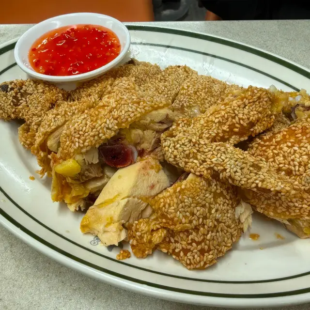 Located in Wan Chai Market, Chung Kee serves authentic Hong Kong dai pai dong street food. The setting is bustling and lively, with a charmingly chaotic vibe that’s part of its local appeal. While the air conditioning struggles to keep up with the heat, the quality of the food makes up for it.I ordered a bowl of oyster congee, which came in a surprisingly large portion, generously studded with tiny fresh oysters that added a briny richness to the comforting rice porridge. The crispy fried chicken, served as a half portion, was beautifully golden and crackling on the outside, juicy and flavorful on the inside—a satisfying contrast to the soft congee.…查看更多
