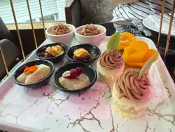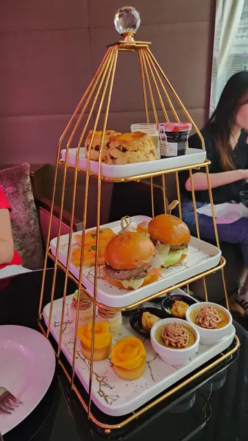 周六晚上因为要就返时间睇戏,所以食个靓靓下午茶,系一个最好嘅选择😄餐厅响2楼,地方比较细,所以唔系太多位,我哋网上预付后大约4点到达,已经剩返少量枱😅今次order经典荟萃下午茶 - 秋日雅叙 - 白桃金栗 - 中西合璧餐牌包括:甜点4款+松饼,咸点4款+饮品下午茶第一层英式松饼伴忌廉及果酱松饼中规中矩啦😅第二层,全部咸点:上:迷你飞驒和牛汉堡,和牛juicy😋中:法式干邑鸡肉栗子酥盒下:沙律酱虾多士,做得啱啱好,唔会太干兼有啲脆口,虾肉仍然弹牙👍🏻👍🏻第三层,咸、甜交集😅左上:樱桃酒栗子焦糖炖蛋😋炖蛋够滑左中:日式清酒鲍鱼伴白桃,好好食,鲍鱼够腍,带有清酒甜香,连汁都饮埋😋😋😋左下:白葡萄酒蕨饼右上:香桃法式杏仁挞右下:自家制日本栗子饼伯爵茶冻青柠柑桔蜜茶,甜甜酸酸中和下餐厅外望街景🏙️呢个境以为自己去左欧洲🥰…查看更多