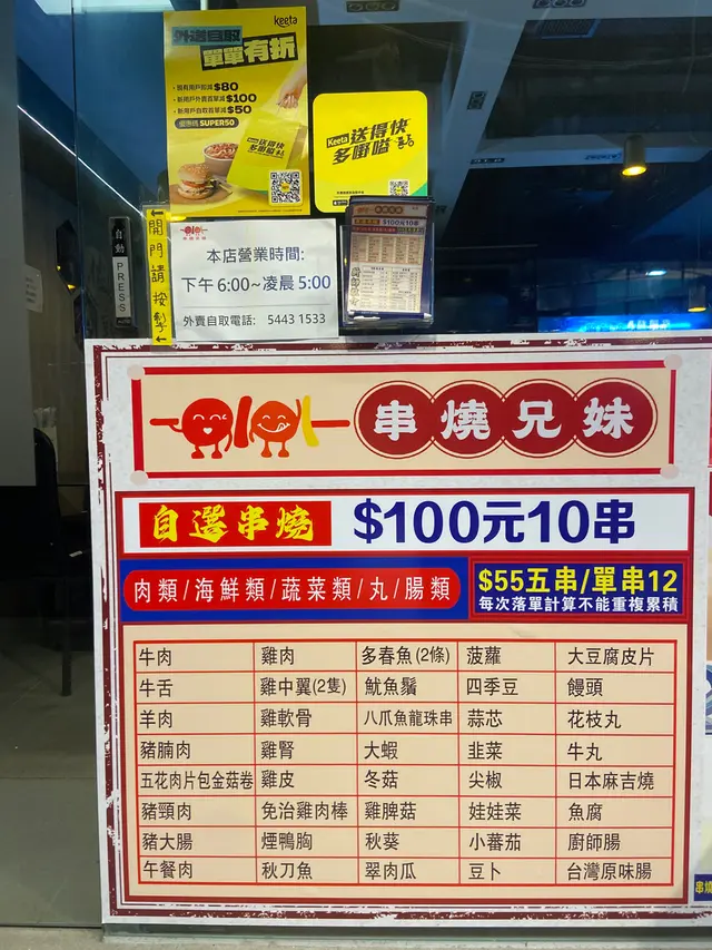 佐敦串燒兄妹經常光顧土瓜灣的串燒兄妹,這次有幸來到佐敦分店,跟三位朋友一同晚膳。佐敦分店行黑色風格,我很喜歡這種氛圍,有儀式感,而且座位比較寬敞,人流亦不會太多,跟人山人海的土瓜灣店比較,我更喜歡佐敦分店,雖然由地鐵站出發要行一段距離,但他有他獨特的優點。食物方面,優點是串燒夠熱,不會像土瓜還分店般水準有點參差不齊,上次吃過不夠熱的串燒仍記在心裡,還好,這次並沒發生這種情況,而且上菜的速度夠快,牛舌和雞肉的肉質在兩間分店相差無幾,調味方面,我覺得土瓜灣分店的雞肉調味比較足夠,吃起來更為惹味,這裏也不錯,只是是比較清淡的版本。牛舌仍是那麼好吃。這次還試了燒豆角,很軟,沒有渣,好吃,值得一試。還點了花甲粉絲煲,優點是這裡的煲比較新,可惜花甲有沙,吃得不夠痛快,土瓜灣分店則沒有這種情況,而且蒜頭更多。但值得一讚的是這間分店願意芫荽另上,實在很貼心。值得一提的是第二回串燒上菜的速度比較慢,我們還害怕是漏單,因為店內並沒有很多人,可能因為接了外賣單。總體來說,人均大約100多元便能吃到飽一飽,串燒其實可以收費很貴,所以這裏的性價比很高。…查看更多