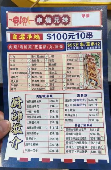 黎开长沙湾,揾食咩晚餐, 朋友推介附近串烧兄妹。 抵食, $100有10串串烧。都算几多选择: 牛肉, 鸡肉, 鸡中翼, 鸡皮, 肠仔, 多春鱼, 午餐肉, 鸡软骨, 鱿鱼须, 韭菜, 花枝丸, 等等等等…. 另外又有烧茄子, 椒盐烧卖等等叫佢可选择小辣, 中辣, 大辣, 又可以选择唔辣 (蜜糖烧 或者 孜然粉调味)