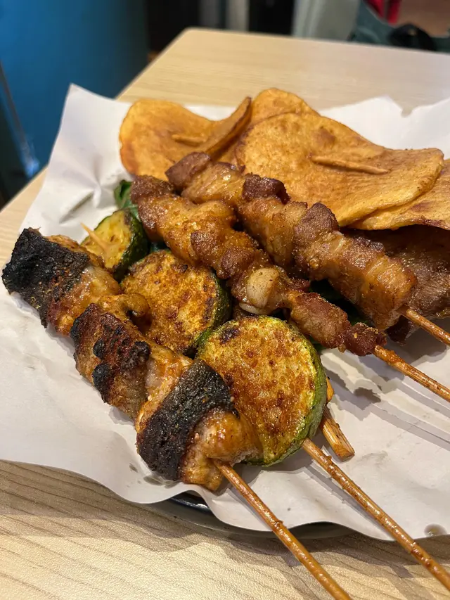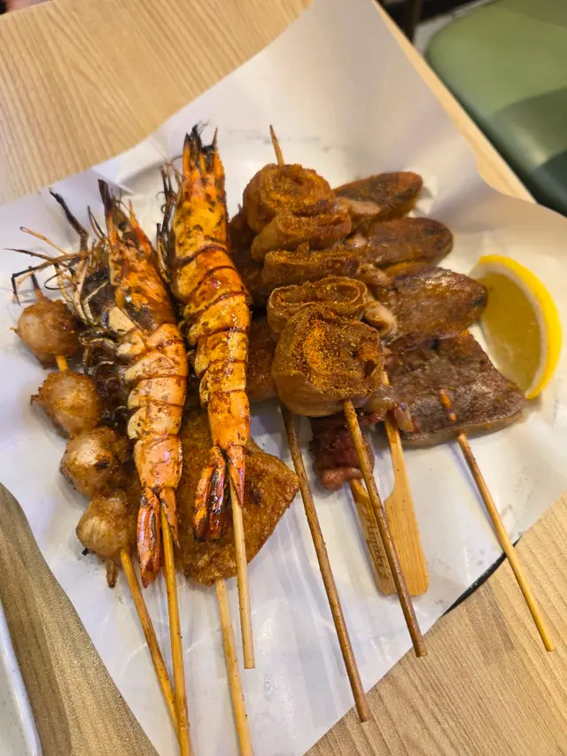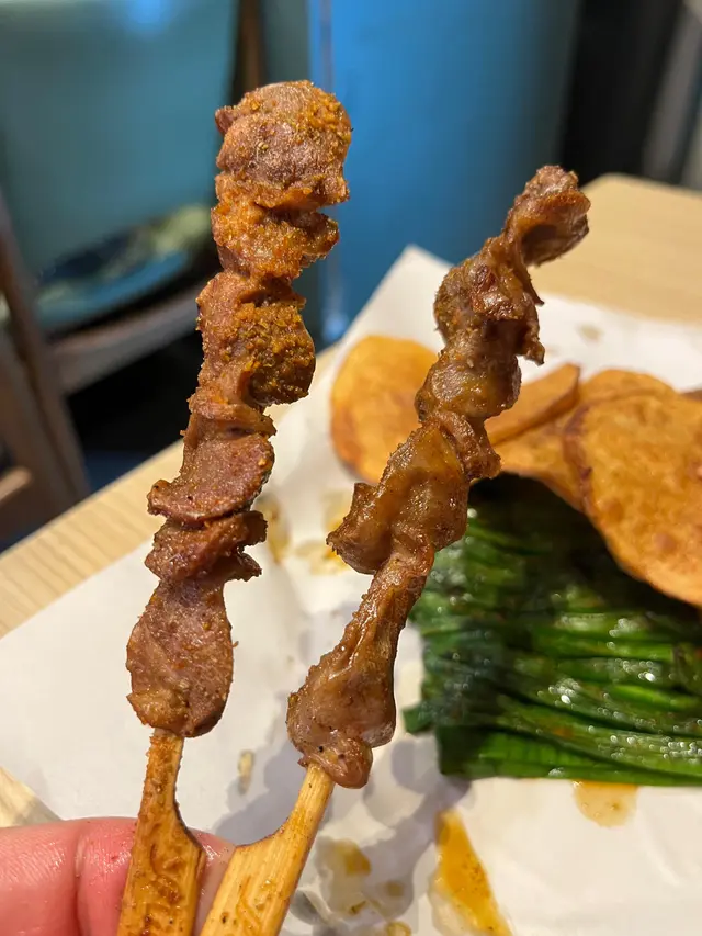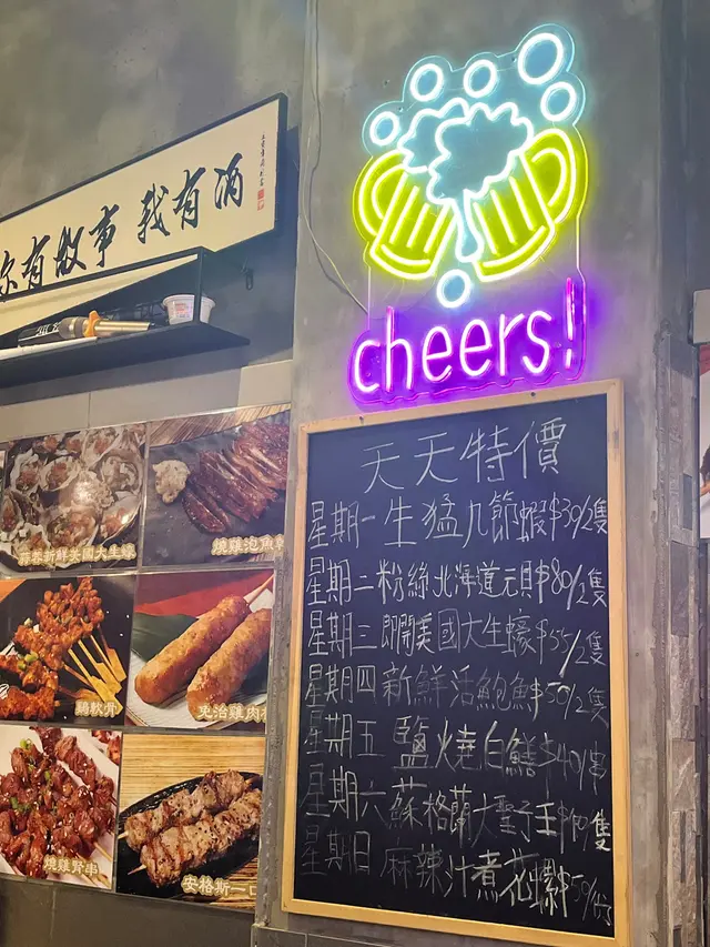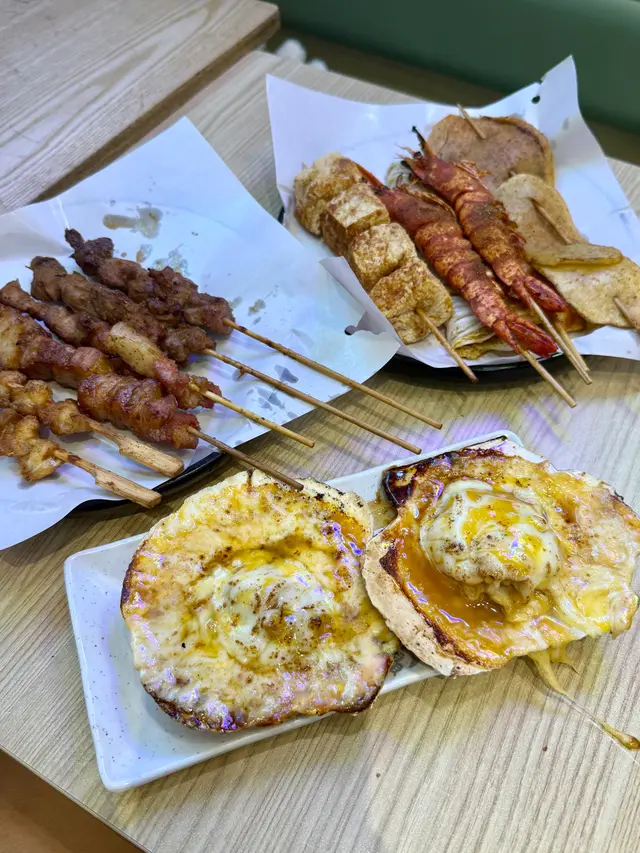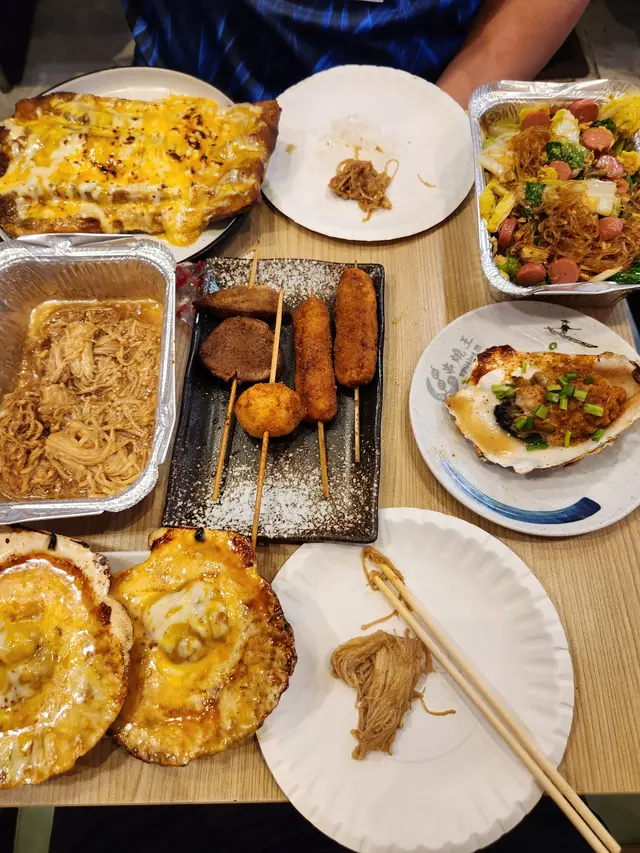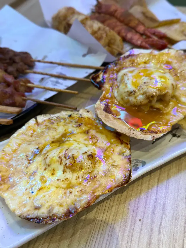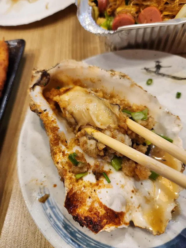 今晚係銅鑼灣睇完戲,見夜附近見到有串燒店,好岩我地晚上食少少野,不過實在太好味,最後越叫越多,好飽好滿足。食完覺得要推介一下海鮮類,估唔到晚上都食到好味海鮮,生蠔同扇貝都好好食。即開新鮮蒜蓉大生蠔 $35/隻生蠔夠哂大隻,蠔肉肥美脹卜卜,邊位爽口好咬,燒得香口又帶有鮮甜蠔汁,加左蒜蓉好惹味。香濃芝士扇貝帶子 $75/2隻熱辣辣勁香芝士味,扇貝彈牙嫩滑,旁邊芝士咸香,配埋個醬汁甜甜地好夾扇貝,超正。紐西蘭羊架 $45羊架厚切唔會好肥,羊肉有咬口連住邊位少少脂肪,好香好正,而且唔會羶,加上孜然粉調味剛好。蒜蓉金針菇 $45賣相平平但入口好蒜香味濃,金針菇吸哂醬汁同蒜味,而且份量都幾多。芝士原條茄子 $45茄子好大碟,因為用上原條茄子,好多肉好正,燒到茄子軟腍,加上大量拉絲芝士,咸香芝士味重,每啖都係芝士同茄子。薄切牛舌 $25,唔薄仲感覺幾厚身,燒得乾身,邊位爽口中間厚肉位置軟腍,調味粉都好香。肥牛金菇卷 $28,又係好正,滿滿調味粉,傳來陣陣香味,肥牛油香加爽口金菇,配啤酒一流。免治雞肉棒 $20,我地叫左每人一串,係雞肉碎同加左d軟骨,增加咬口,味道同口感都好味。墨丸 $22,大大粒好彈牙,再燒得香口d 更正。川北炒粉絲 $68好夠鑊氣好香呀,超大盒,粉絲吸哂醬油調味,咸度剛好,炒得乾身唔油,有腸仔、胵蛋、雜菜......幾多配料,食完好飽肚。…查看更多