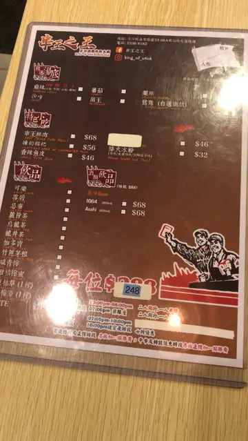 其实之前去深圳已经见过很多地方吃串串!因为以前在香港未见过,所以特别感好奇!之后巧合见到尖沙咀都有串串锅,便约朋友来试试!串王之王晚上是$248放题任食任饮,一班人来烚下串下的确不错!有搞笑湿纸巾和纸巾提供!餐具和环境都很有复古风!汤底有5款可选,可鸳鸯汤底!我们选了药膳和沙嗲,药膳汤养生,沙嗲很惹味!每枱都有托盘,拿出去在雪柜自取食物!各式各样的串串,有肉类、海鲜类、肠类、丸类等等。上层有各种蔬菜和粉面。最下层有不同的小碟例如炸鱼皮、鱿鱼、青口、鸭血、牛栢叶等,不过是限时的!酱料也有很多,很有成都风味!店员推介成都特式的香菜配牛肉!这里的串串牛肉都经过腌制,很稔,起初以为会好辣,竟然没有,是香料味比较重!我之前已经好想试的风琴豆腐,这里也有!吸汤一流!饮品种类也不少,有盒装、罐装,也有一jar jar的!也有椰汁雪燕做甜点,清甜解腻!
