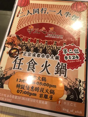 串王之王 - 正宗成都串串火鍋 (尖沙咀) 网址: https://s.openrice.com/QrLS0jme900 地址: 香港尖沙咀金馬倫道34-36A號福僑大廈地舖 电话: +852 23368182