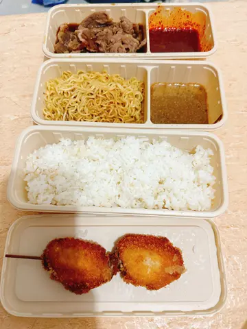 外卖包装靓,方便领取。烧牛肉饭配自家制辣酱,牛肉新鲜,烧汁加辣酱食落唔会太辣,特别惹味。仲有一碗玖妈靓汤,凉瓜黄豆瘦肉汤,生津开胃。串玖里孜然酱汁捞面配炸鸡翼串,呢个孜然酱好独特好浓烈,将整个捞面嘅味道升华到另一个层次。炸鸡翼串外脆内嫩,口感味道一流!