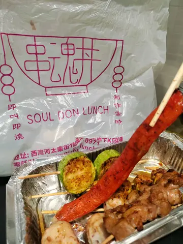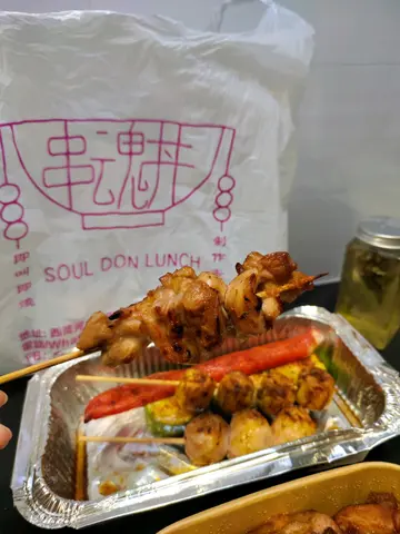 位于西湾河的串烧小店,主打各款串烧,只做外卖。这边一带,尤其是太安楼附近,都是扫街小吃为主,很多街坊都买回家慢慢享受。这间串烧店,所有食物都是即叫即烧即制作,所以制作需时,或者可以预先电话下单,更加快捷。DIY串烧套餐:鸡髀肉、烧卖、翠玉瓜、墨鱼丸、长蟹柳自选串烧套餐分别有5或10款串烧的套餐选择,以锡纸盒盛载,拿回家依然是保持温热的,打开锡纸盖,已经闻到一股烧烤的香气。选了麻辣,小辣,每款串烧都散发著麻辣焦香味,刺激味蕾,非常开胃。推介烧墨鱼丸,弹牙口感,非常有嚼口,里面还有墨鱼粒。原条长蟹柳串烧,很特别,较少吃。翠玉瓜很厚切;烧卖烧得胀卜卜,外层脆口,不过稍为有点干。鸡髀肉肥美,烧得油香。夏日之选:沙嗲鸡肉捞面除了串烧外,还有主食、面食及丼饭。小店的沙嗲汁也是招牌之一,酱汁铺面,捞面没有额外加添调味料,只需把沙嗲汁跟面条拌匀,已经够味。沙嗲酱香浓惹味,微辣,鸡肉咸香入味,份量也很多。自家制冷泡茶:蜜桃乌龙冷泡茶冰冻的乌龙茶饮,带点蜜桃清香,很清新,解渴又解腻。…查看更多