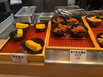 豚软骨高汤乌冬($59)汤底浓厚够味。猪软骨得一旧,两三啖就食完,煮得够软身,肉质腍,味道一般。半只烚鸡蛋,味道正常。乌冬份量合适,质素不错,口感十分滑,咬落有𡁻劲。海苔竹轮天妇罗($14)十分失望,冻的,唔脆身,软淋淋。蕃茄牛肉乌冬($59)汤底蕃茄味足,唔太酸。牛肉有三片,唔太肥,无乜牛味,稍稍过熟,另外附带一堆洋葱。乌冬份量合适,质素不错,口感十分滑,咬落有𡁻劲。野菜鱿鱼($19)虽然唔系冻,但室温,都系唔热的。座位区附近有一个自助 counter,提供天妇罗碎、酱汁、调味粉、水。老实讲,除咗主打嘅乌冬外,配料、汤底都比较一般,而额外加钱嘅小食更加唔掂,十分失望。…查看更多