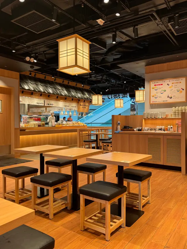 但有少量沙,烏冬係新鮮做,粗身有咬口。另一碗清湯牛肉烏冬(大)$59,牛肉同汁都係平常食牛丼既味道,都唔錯,但個人都係中意蜆肉多啲,感覺無咁肥。排隊點餐即叫即整,然後會經過炸物區,選好後比錢。一直都知道有自助斟水,原來現在連埋自助配料區都有,有七味粉、芝麻、青蔥、脆脆邊角料等等。我每樣都拎左啲,成碗烏冬即揸刻變左唔同風味