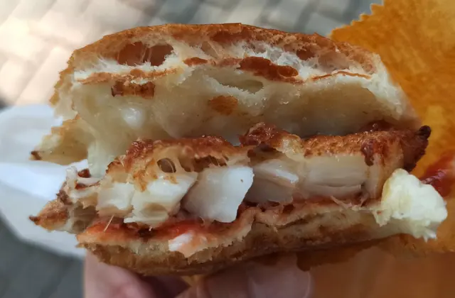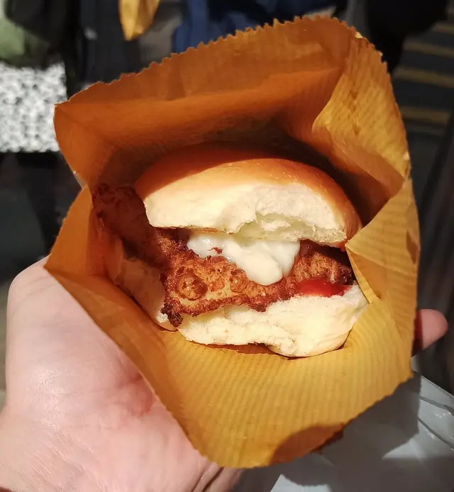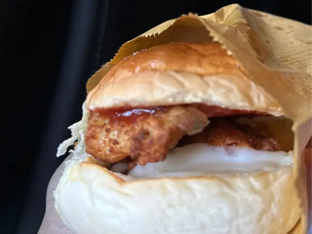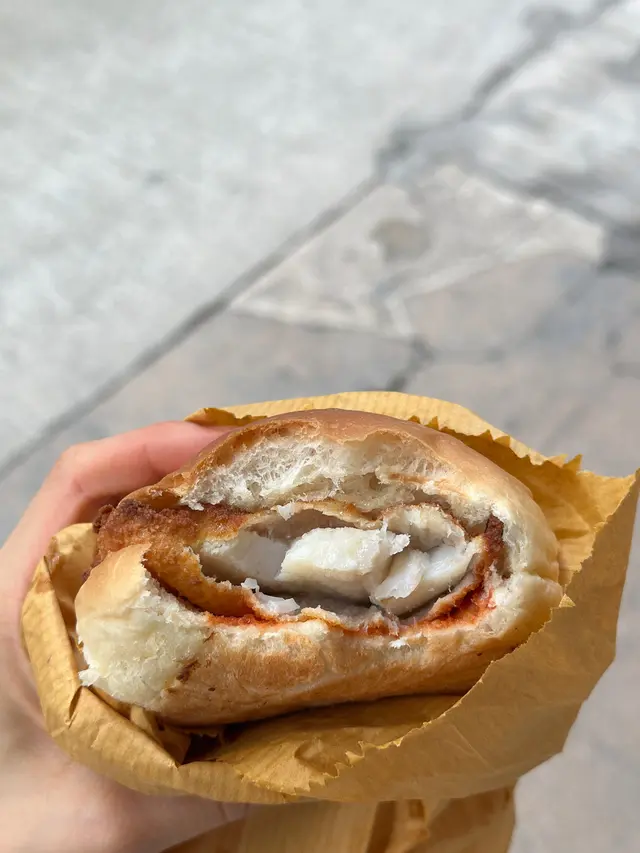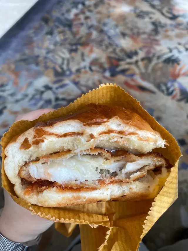 以前成日經過,一直都未試過,今日終於行過見冇乜人就入去買~買咗一個炸魚柳包一個炸豬扒包同一隻雞髀!(雞髀忘記拍照了)有種非常小時候那種麵包店的回憶!做法簡單,但卻非常好吃~沙拉醬配蕃茄醬。剛好中和炸豬扒和炸魚柳的油膩,不過個人覺得炸魚柳好像比較好吃!魚柳超級大塊