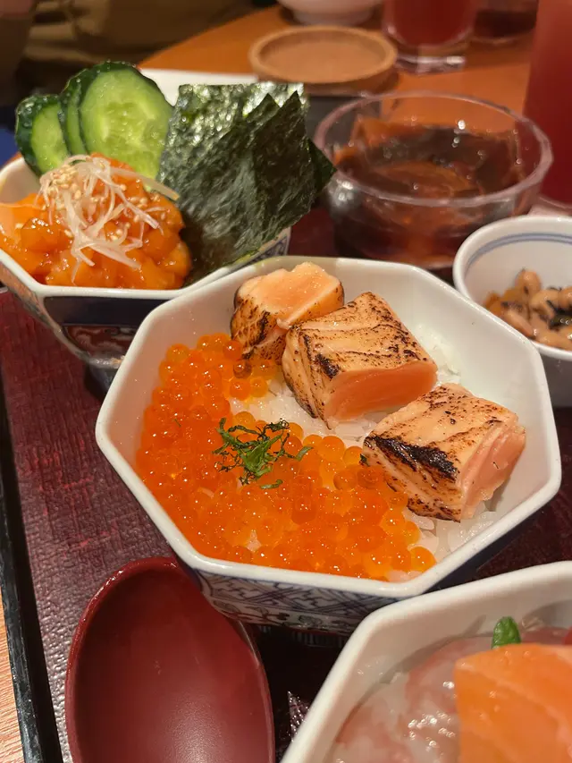 新年日日都周圍去親戚屋企拜年,拜完年喺荷里活廣場見到一間日式料理丼丼屋裝修好靚好日式。我哋食咗:🥢迷你三色三文魚丼定食🍣💰98 1️⃣有三文魚·赤海蝦丼,三文魚好肥美,海蝦鮮甜,啖啖肉。2️⃣灸燒三文魚·三文魚籽丼,灸燒三文魚表面同個邊,入面保留三文魚肉質,所以三文魚仲好嫩滑。三文魚籽好多鋪滿成個丼飯。3️⃣辣味三文魚建議最後食,辣味三文魚用咗特調香辣醬汁漬,微辣感覺好新奇,平時比較少見。🥢燒和牛丼💰98 和牛份量好多,牛肉油脂分布平均,撈埋日本蛋黃,令牛油又香又滑,飯份量好多 。🥢牛肉壽喜燒💰98,我加咗雞肉,牛肉、雞肉份量好多,仲有娃娃菜、冬菇、洋蔥🧅,好豐富。定食仲附送甜品、前菜同飲品,飲品就揀咗水果茶。 📍丼丼屋 (荷里活廣場) 鑽石山龍蟠街3號荷里活廣場3樓371號舖 @dondonya.hk 總結:丼丼屋丼飯大件夾抵食,平均一個丼一百蚊都唔洗仲有飲品🥤同甜品,餐廳裝修風格好日式,好似置身於日本一樣。#丼丼屋 #丼丼屋x鳥開 #DONDONYAXTORIKAI #期間限定 #迷你三色三文魚丼定食 #辣味三文魚丼#炙燒三文魚三文魚籽丼 #三文魚赤海蝦丼 #厚切三文魚帆立貝刺身查看更多