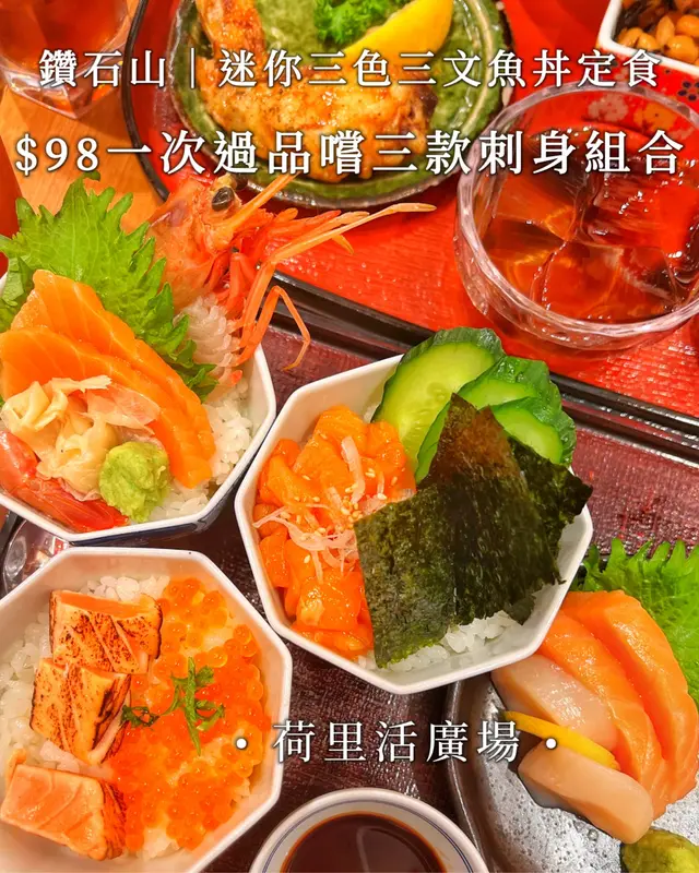 召喚三文魚迷!丼丼屋 @dondonyahk 期間限定由即日起至3月11日 推出定食三款迷你三文魚丼包括辣味三文魚丼|炙燒三文魚·三文魚籽丼|三文魚·赤海蝦丼|還附有定食前菜 味噌湯甜品及果茶 只需$98💥CP值超高 深受歡迎一種食材 以不同方式炮製三款口味 各有特色⋯⋯⋯⋯⋯⋯⋯⋯⋯⋯⋯⋯⋯⋯⋯⋯⋯⋯⋯🍱迷你三色三文魚丼定食。辣味三文魚丼新鮮三文魚片拌以微辣醬汁🌶️口感鮮嫩帶有層次辣度適中不搶味 米飯粒粒分明 與三文魚完美融合配搭青瓜片🥒整體風味濃郁卻不膩口 有驚喜。炙燒三文魚·三文魚籽丼炙燒三文魚表面微焦🔥中間保持嫩滑 散發誘人香氣搭配晶瑩剔透的三文魚籽 在口中爆開的鮮味與炙燒三文魚的油脂香氣交織🧡口感非常豐富。三文魚·赤海蝦丼三文魚與赤海蝦的組合鮮味十足🦐賣相精緻鋪上柔軟細膩的三文魚 和彈牙鮮甜的赤海蝦海鮮的鮮味🍚與米飯的甜味相得益彰 令人滿足·🍣厚切三文魚帆立貝刺身意猶未盡?可以用$32優惠價追加厚切刺身三文魚肥美 帆立貝鮮甜💫厚切+新鮮 = 完美⋯⋯⋯⋯⋯⋯⋯⋯⋯⋯⋯⋯⋯⋯⋯⋯⋯⋯⋯🐥名古屋鳥開親子丼定食日本名古屋嘅滑蛋及雞肉料理專門店—鳥開曾經連續5年榮獲「全國丼連盟」的金賞受賞絕對是定食必吃之選🏆用日本玉子製成滑蛋配上名古屋交趾雞 肉質紮實 最後加上蛋黃附前菜 沙律 麵豉湯 鳥開手羽先🍗甜品及果茶查看更多