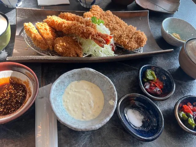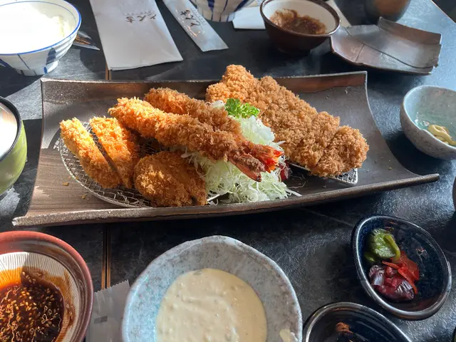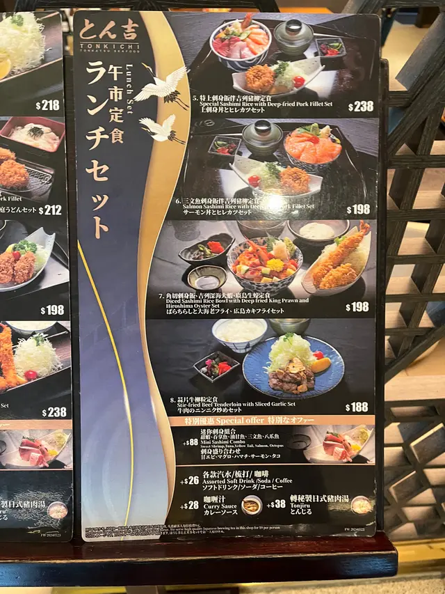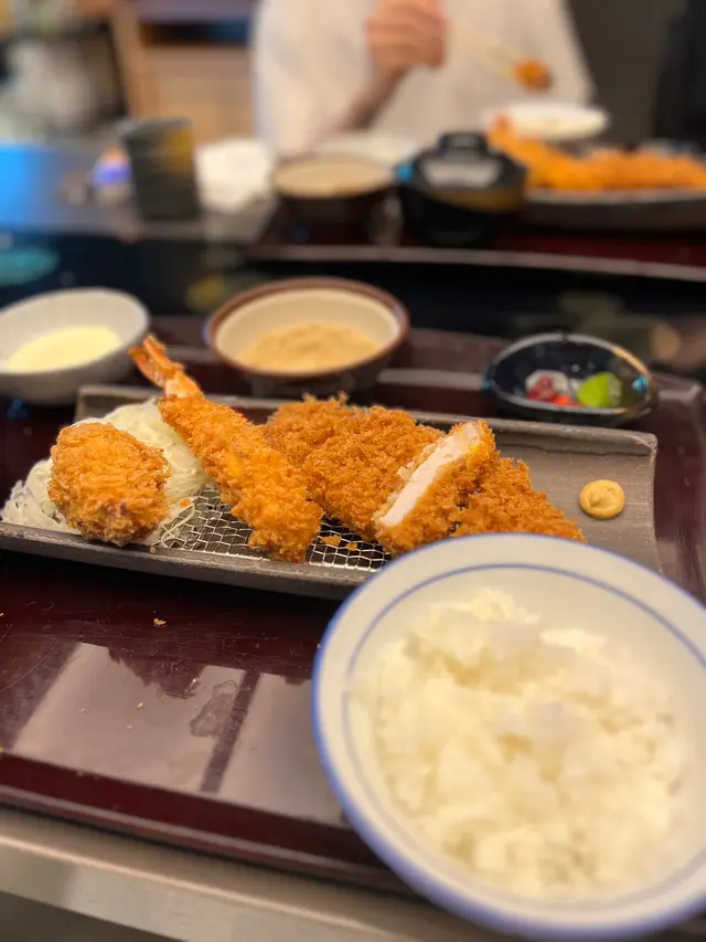 打風前夕,決定要對自己好d,所以去左食Tonkichi とん吉。叫左午餐套餐,吉列深海大蝦、廣島生蠔和雞扒配冷稻庭烏冬的定食,價格為$188(未連加一及茶位),無疑是比晚餐散叫餐牌平~吉列深海大蝦的蝦身外裹著金黃酥脆的麵衣,咬下去的瞬間,感受到外層的酥脆,搭配特製的豬扒醬汁及研磨芝麻,好食❤️廣島生蠔~炸蠔搭配檸檬和醬汁,外脆而內裡口感滑順,鮮甜味十足。雞扒的外表金黃,內裡卻保持著多汁的口感。冷稻庭烏冬彈牙的口感與炸蝦、炸蠔及炸雞扒形成絕佳的搭配,讓整體味道層次更為豐富。…查看更多