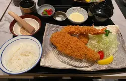 啲吉列嚟到⋯⋯份量系一啲都唔少,极上の豚够厚身炸得岩岩好,唔会好硬好实嘅口感;炸海鲜都系即时食