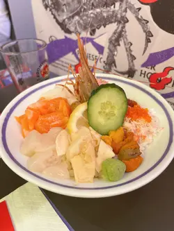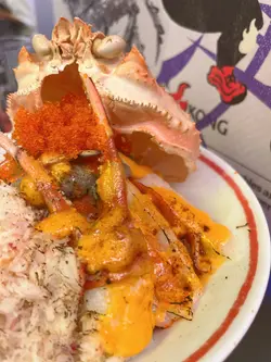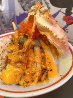 那天晚上和朋友在尖沙咀逛到饿,经过厚福街,见丼燃食堂主打日式丼饭,就入去试下。门面不算张扬,有点像日式小食堂的格局,坐得算舒服。店员手脚快,一坐低就递上麦茶!这里主打自选丼,概念几过瘾,像吃车仔面但升级成刺身,全部自己话事。我这种选择困难症患者,跳过了自选区,瞄准店家配好的两款丼饭。乜蟹都有丼听个名就知系食蟹。一上枱,视觉先赢:蟹肉丝、蟹棒、蟹膏,再加2只蟹钳同卜卜脆的蟹籽,真系将「蟹」拆解到极致。入口蟹膏甘香突出,蟹肉鲜甜,捞埋醋饭同蟹籽一啖放入口,层次很多很丰富。九公丼朋友点的更丰盛,海胆、三文鱼、三文鱼籽、牡丹虾、蟹肉、带子、拖罗……摆到满一满,几乎睇唔到饭。海胆creamy无腥味,拖罗油脂香润,牡丹虾爽甜,每样食材都新鲜,无欺场。爆葱鹅肝多士小食方面,爆葱鹅肝多士值得一赞。鹅肝煎得外脆内软,油香澎湃,配上大量炸葱丝同烘得脆身的多士,邪恶但满足,咬落「咔嚓」一声,好滋味。焦糖烧菠萝串最后以焦糖烧菠萝串收尾,菠萝烧得暖甜多汁,面头焦糖脆片微微焦香,解腻又清爽。…查看更多