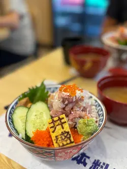 Late lunch想食帶子刺身。行過灣仔呢條可以叫食街嘅廈門街,日式舖頭都有唔少。行近電車路口俾呢間menu色彩鮮豔嘅舖頭吸引入左去。間舖頭細細,大概可以坐20個人,木系裝修。午市套餐每個餐都跟沙律同麵豉湯,可以加15蚊轉佢哋個招牌魚湯。我揀咗有牛油果嘅火炙三文魚帶子丼。等咗一陣就上咗例牌嘅湯同沙律。到個主角,個丼飯都幾大碗,有四大塊三文魚,三隻一開二嘅帶子,牛油果佔咗三分一碗面,仲有啲蟹子。三文魚都幾肥美,火炙過都唔鞋。不過帶子就令我有少少失望,可能因為火炙到半熟佢有啲鞋,亦食唔到帶子應有嘅鮮甜味。反而牛油果同蟹子加埋醋飯就出奇好食,口感豐富,又creamy,又pop pop,鹹得黎又有啲甜,甜得黎又有啲鹹