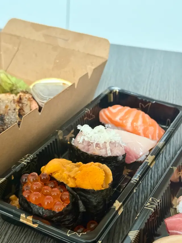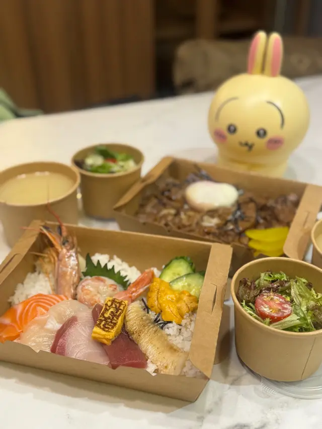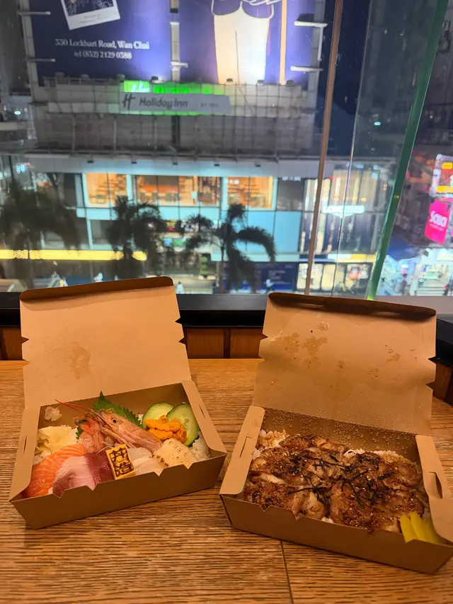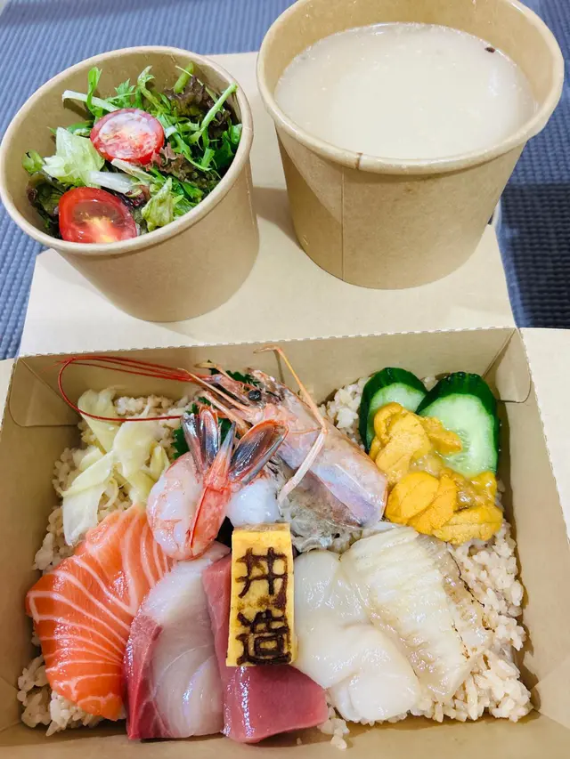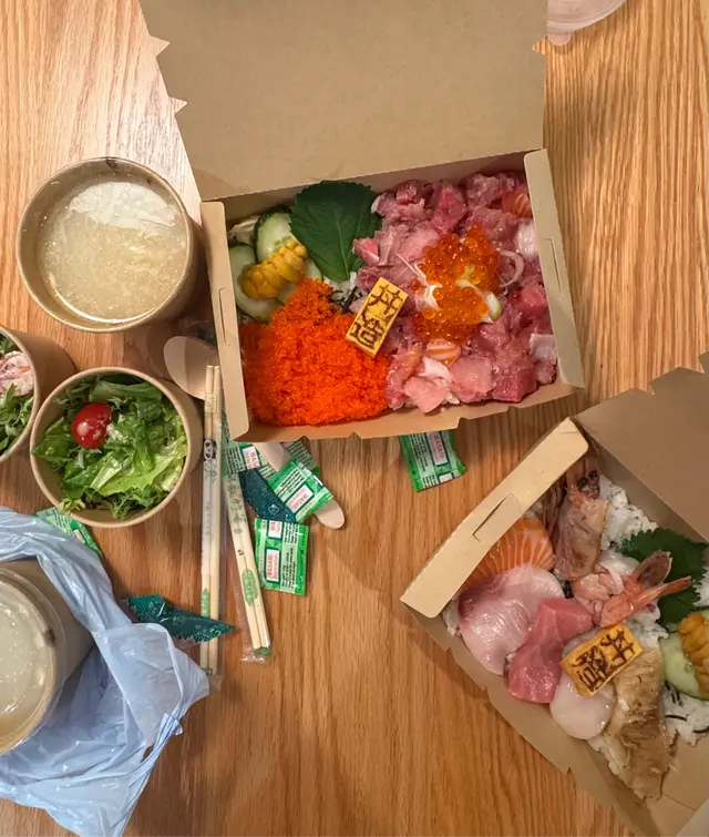 喺上環搵食,好多時都係匆匆忙忙買個外賣就返辦公室。最近發現咗一間隱藏於小巷嘅外賣壽司店「丼造」,雖然店面細細只有幾個堂食位,但質素絕對拍得住高級壽司店!今次試咗兩款特選壽司拼盤同燒三文魚扒,真心要同大家分享呢個驚喜發現!🍣 特選壽司拼盤A ► 三文魚|海膽軍艦|吞拿魚蓉|三文魚籽|油甘魚第一眼見到個拼盤已經眼前一亮!三文魚厚切得嚟油脂分布均勻,入口即化;海膽軍艦絕對係亮點,北海道馬糞海膽甘甜濃郁,完全無腥味,紫菜仲保持脆口;吞拿魚蓉份量十足,混合咗少少蔥花,口感豐富;三文魚籽爆漿感十足,鹹鮮味恰到好處;油甘魚魚味突出,有種淡淡嘅回甘。每件壽司嘅飯都握得剛好,醋飯溫度同酸度平衡得好好~🍣 特選壽司拼盤B ► 凡立貝|赤貝|三文魚腩|中吞拿魚腩|油甘魚呢個拼盤更加適合追求口感嘅朋友!凡立貝超大粒,鮮甜軟嫩;赤貝爽脆彈牙,新鮮度滿分;三文魚腩油脂香氣特別濃郁,食落超滿足;中吞拿魚腩係驚喜之作,魚油豐腴得嚟又唔會太膩,入口融化感令人難忘;油甘魚同樣保持高水準。整體嚟講,呢個拼盤層次更加豐富,絕對值回票價~🐟 燒三文魚扒配白飯估唔到外賣嘅燒魚都可以保持到咁好水準!三文魚扒燒得皮脆肉嫩,魚皮香脆得嚟帶點焦香,魚肉依然保持juicy。配上特製檸檬汁醬油,清新嘅酸味完美平衡咗魚油嘅膩感,送飯一流!白飯都唔馬虎,粒粒分明,軟硬適中~🍲 魚湯叫咗兩碗魚湯,真心推薦!湯底奶白色,飲得出係用真材實料熬製,魚味濃郁得嚟唔會腥,飲完成個身暖笠笠。外賣都用密封碗裝得好實,完全無漏,返到辦公室都仲係熱辣辣~…查看更多