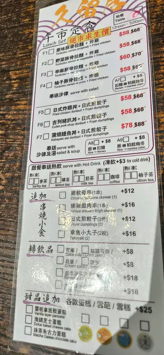 从来未食过咁难食嘅日本菜!本身打算揾个静静地地方食个午餐,经过见到有饺子有汤,就试一试…点知伏到真系返唔到转头!老实讲卖相唔错,但系食落完全唔知食紧咩…午餐送汤同沙律,麻酱沙律正常,个汤又唔似面豉汤,又有啲西式嘅感觉,估计佢有啲似系用拉面汤底俾碗汤你,好油好咸!午餐仲有一份饺子(两粒); 饺子预咗一定系攞货。我系饺子控,真系未食过咁难食嘅饺子!又系好咸!饺子皮腍晒又韧又冻!吉列猪扒好明显似系街坊小吃店式果种仿急冻炸猪扒,炸皮又硬又厚!最后,发现门口餐牌价钱同坐低有差别。不过几蚊就算,早走早着。人生中第一篇差评真系忍唔住!最主要系连好难出错嘅饺子…佢都竟然可以错得咁交关…究竟个厨师有冇试过味?老板入货又有冇试过?早啲撤离西贡啦,唔该!…查看更多