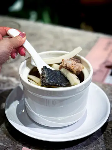 香港有唔少点心专门店,但每次经过尖沙咀 "乐意点心",发现门口排长龙,好奇之下,呢日就去咗食依度嘅绝配套餐,另拣选几款点心。店内地方虽然唔系好大,但装修颇有格调,环境舒适,服务亲切友善。点心用料上乘,卖相精致,好比酒店级嘅中菜厅里嘅点心。点心种类都唔少,无论系传统蒸点、煎炸、肠粉、包点以至蒸饭和甜品,都应有尽有。而且系即叫即制,保证新鲜热辣。绝配套餐 $68有一个蒸饭、一个炖汤及可+$10追加精美点心,非常抵食。而且还可以加钱换成比较贵价的食材。这次食好一点,加了$20 转换为「笼仔蒜蓉海虾饭」及 +$10 腊肠一份。开边海虾肉质弹牙,腊肠肉味香浓,海鲜嘅鲜味被蒸饭所吸收,再加上蒜蓉的蒜香,每一啖都非常享受。「椰子炖乌鸡汤」,一上枱就闻到浓浓嘅椰子同乌鸡香气,汤底清甜顺喉,饮落暖胃又滋润,真系身心都满足!以套餐汤品黎讲,质素远超预期!碧绿叉烧肠粉 $28叉烧份量非常多,肉味浓郁而软腍,配合有米香又滑溜嘅肠粉,高质。青瓜蚬仔捞汁 $26蚬肉同青瓜份量颇多,蚬肉鲜甜,青瓜爽口,配自家制酱汁,带少许辣,味道都不错。芝麻虾多士 $22虾多士每一件都好大件,上面铺满芝麻增加风味,咬一口特别香脆完全唔油腻,沾一下酸酸甜甜嘅酱汁更滋味。鲜竹牛肉球 $19手打牛肉球都几大个,肉味浓郁,加入香菜和马蹄,食落特别爽口。…查看更多