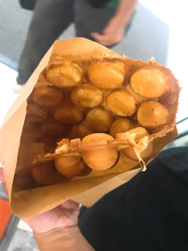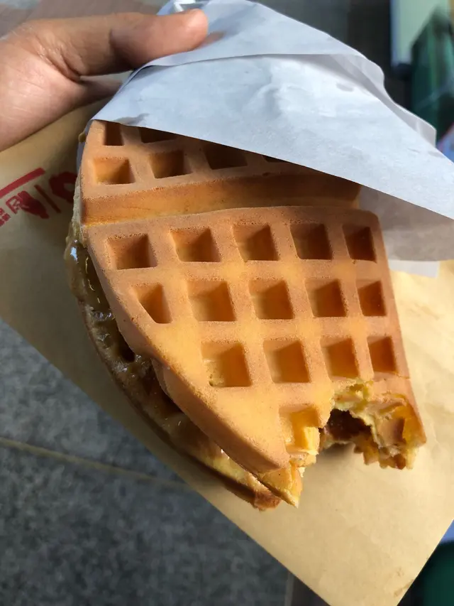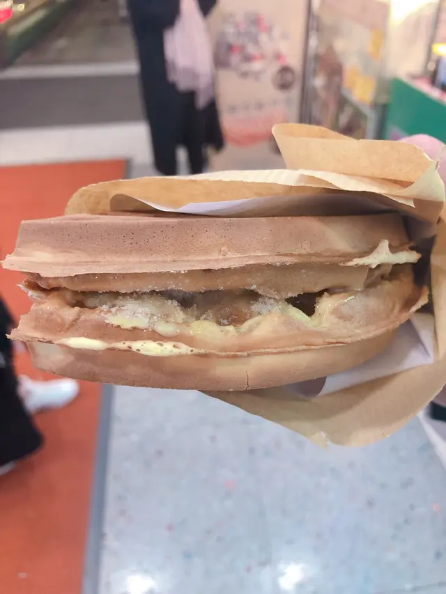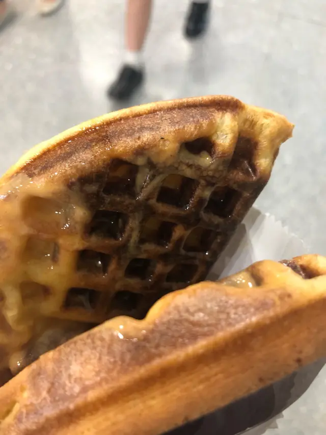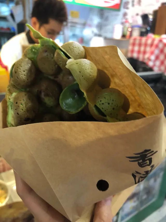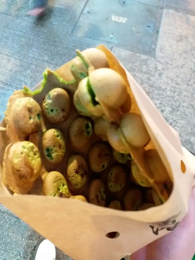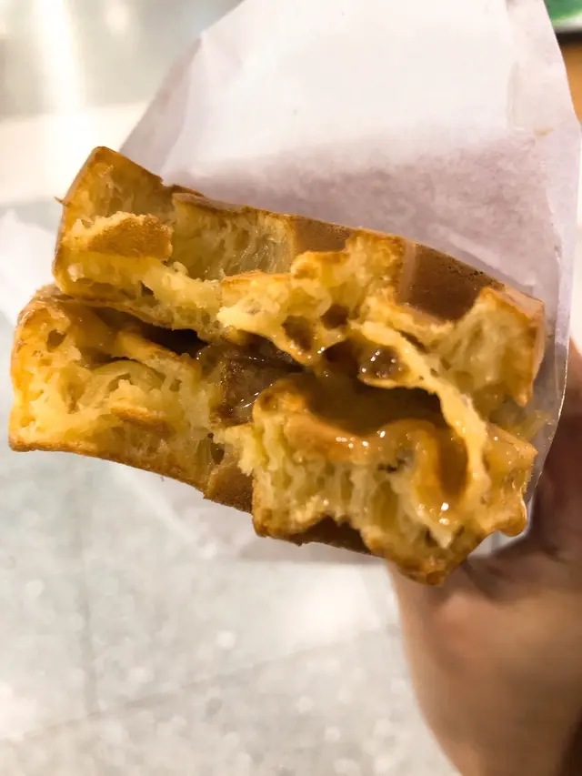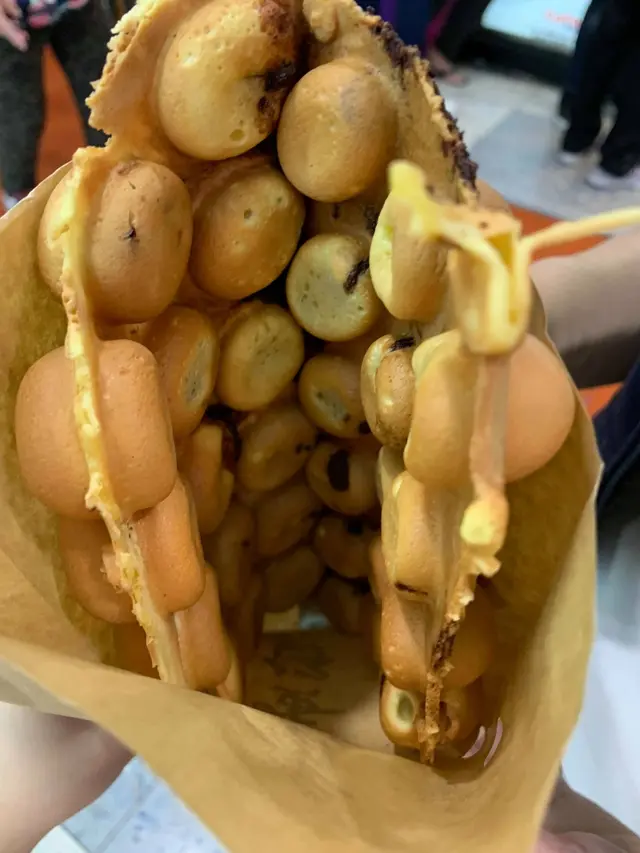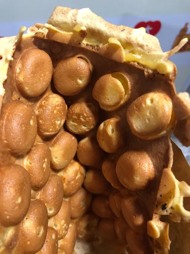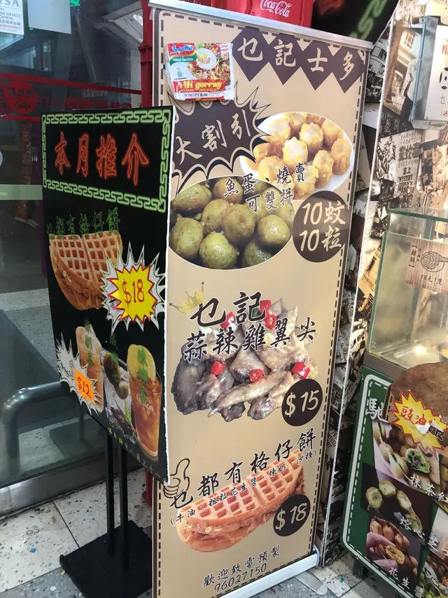 西九龍中心向來多平靚正食物,有一次在近行人天橋接駁位置的「乜記士多」,偶然嚐到的夾餅又脆又有質感,花生醬爆汁,十分正斗!那一次所叫的名為「乜都有格仔餅」,屬傳統口味,餅裏面塗上牛油、粗粒的花生醬、煉奶及白沙糖,十分豐富。尤其是白沙糖同粗粒花生醬令口感「起沙」,吃落更覺美味。格仔餅焗得夠硬夠脆,唔會是那些軟而無質感之流。格仔餅表皮好完整平滑,賣相已加了不少分。值得一提的是內裡的餡料多到爆汁,一咬必晒出來,爽呀!看店內部份員工有點面熟,原來是以往佐敦一間我常去的雞蛋仔店過來的,怪不得水準不俗。後來再去了一次吃雞蛋仔。等候期間,吃了一個陳皮魚蛋與燒賣雙拼,落咖哩汁,味道無什麼特別,但十元共有十粒,可說是深水埗價錢,算抵食了。等了約十分鐘,我要的熔心芝士雞蛋仔來了。相對格仔餅來說,雞蛋仔的外型只是一般,因為表面不夠光滑,但尚算飽滿,而且做到外脆内軟的口感,更重要的是內餡芝士熔化程度剛好,做到甜中帶鹹兼流心的效果。整體來說是中上水平。總的來說,我挺滿意此店之出品,應會繼續幫襯。…查看更多