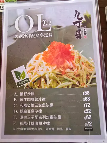 放工同朋友去咗九丁目日本料理🎏餐厅环境,气氛几好;店员态度都好好有多款刺身,寿司,串烧,丼饭,锅物等亦有户外位置 可以带埋竉物🐱🐶我地试左佢地既:🥢六品刺身盛 $318(三文鱼,白身鱼,北寄贝,带子,甘虾 各三切海胆一份) 刺身好新鲜👍🏻海胆唔会好腥🍣寿司拼盘 $222 (18件寿司)寿司好新鲜,摆盘都好靓😆🥢 法式黄金酱三文鱼多士 $62三文鱼多士好大件😳食落好脆口🍤吉列炸虾四本 $48炸虾即叫即炸 炸得外脆内嫩🍲青酒煮海蚬 $80口感鲜嫩😳有清酒的香味🍽️ 西京烧银鳕鱼 $148店员拎上嚟既时候已经闻到好香食落去鱼肉质好滑🥤 绿茶可乐 $32有绿茶既香味 亦都保留左可乐既清爽☺️唔会太甜 …查看更多