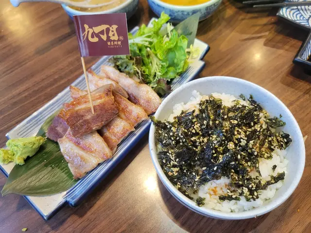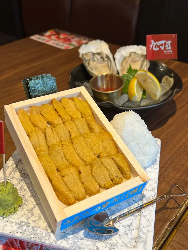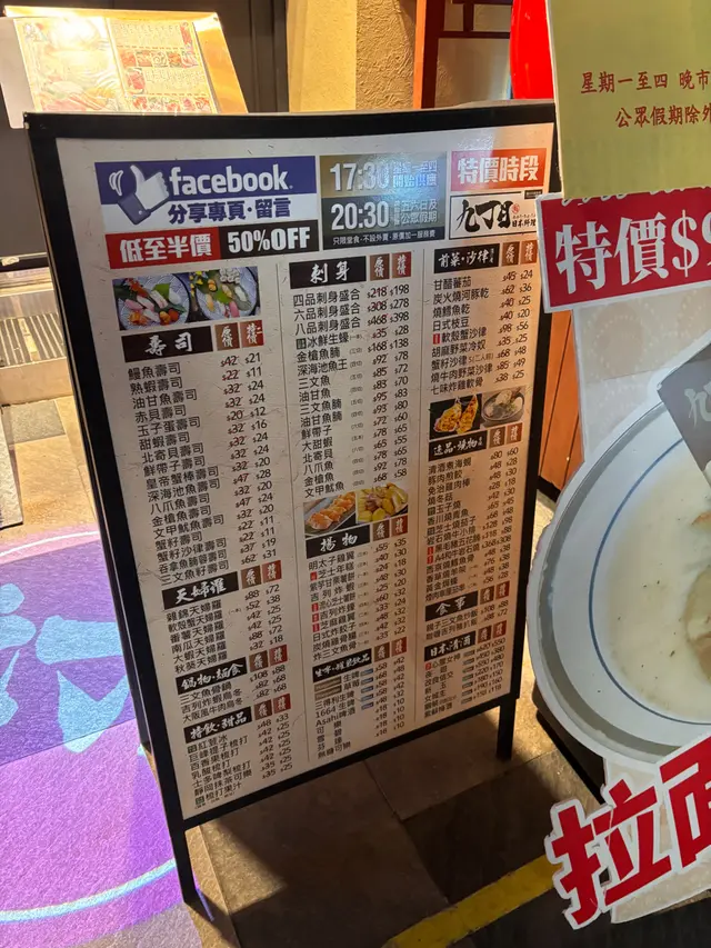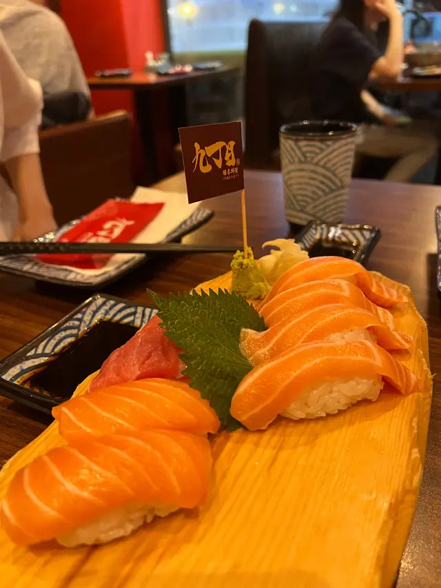 放工同朋友去咗九丁目日本料理🎏餐廳環境,氣氛幾好;店員態度都好好有多款刺身,壽司,串燒,丼飯,鍋物等亦有户外位置 可以帶埋竉物🐱🐶我地試左佢地既:🥢六品刺身盛 $318(三文魚,白身魚,北寄貝,帶子,甘蝦 各三切海膽一份) 刺身好新鮮👍🏻海膽唔會好腥🍣壽司拼盤 $222 (18件壽司)壽司好新鮮,擺盤都好靚😆🥢 法式黃金醬三文魚多士 $62三文魚多士好大件😳食落好脆口🍤吉列炸蝦四本 $48炸蝦即叫即炸 炸得外脆內嫩🍲青酒煮海蜆 $80口感鮮嫩😳有清酒的香味🍽️ 西京燒銀鱈魚 $148店員拎上嚟既時候已經聞到好香食落去魚肉質好滑🥤 綠茶可樂 $32有綠茶既香味 亦都保留左可樂既清爽☺️唔會太甜 …查看更多