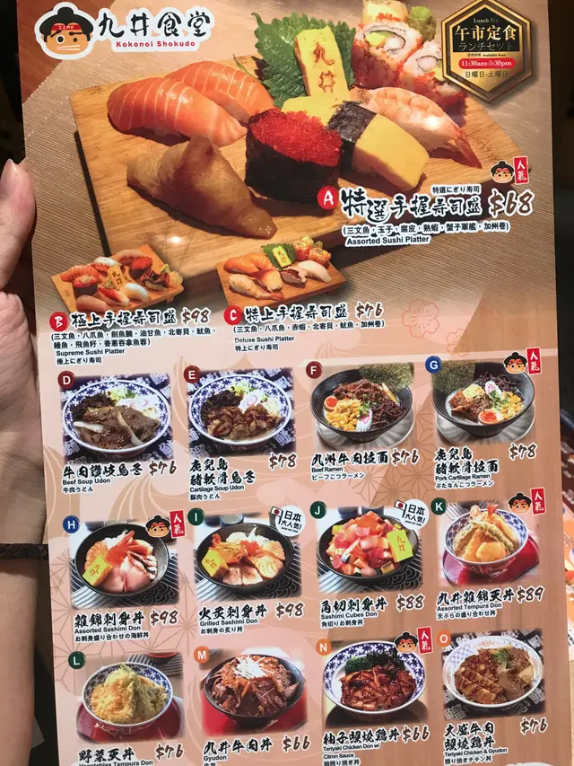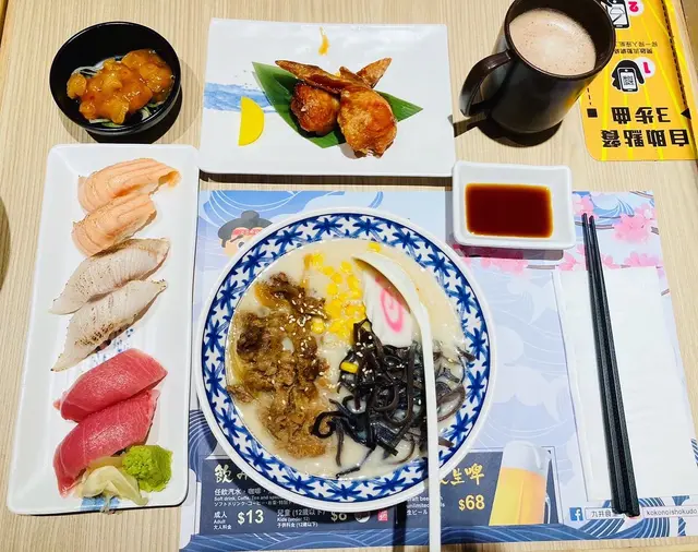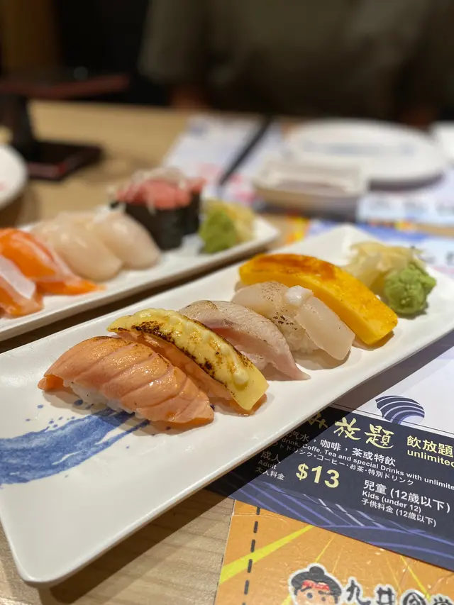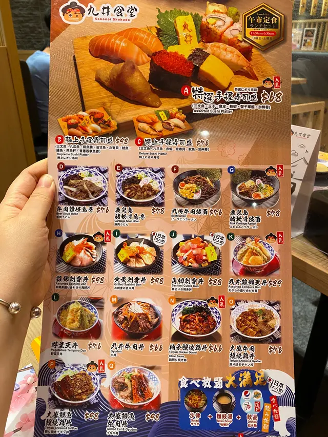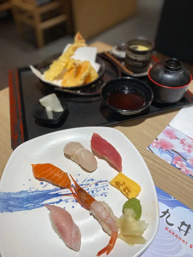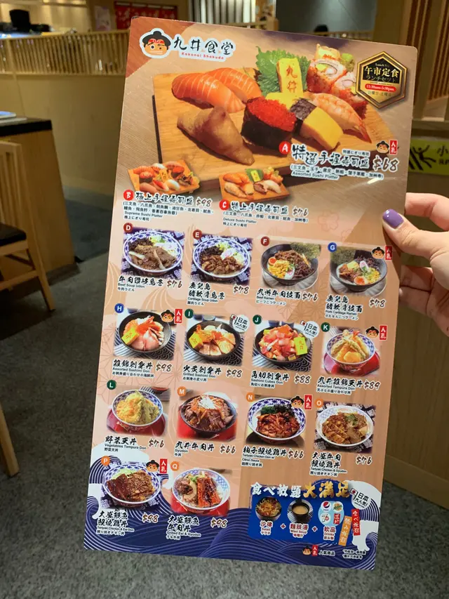 是日晚餐去左香港仔搵食,最後係香港仔中心四期見到好有日本🇯🇵風嘅九井食堂,甘一定要試試佢入面嘅裝修風格好有日本風,讓我猶如置身於日本一樣九井壽司盛定食🍱🍱🍱食物都好豐富(雜錦壽司🍣,麵豉湯,天婦羅,茶碗蒸,前菜)壽司夠新鮮;麵豉湯中規中矩;天婦羅入口鬆化唔會成口油,配埋個汁,好食;茶碗蒸完美,蛋香味濃,蒸嘅時間岩岩好,超級嫩滑回味