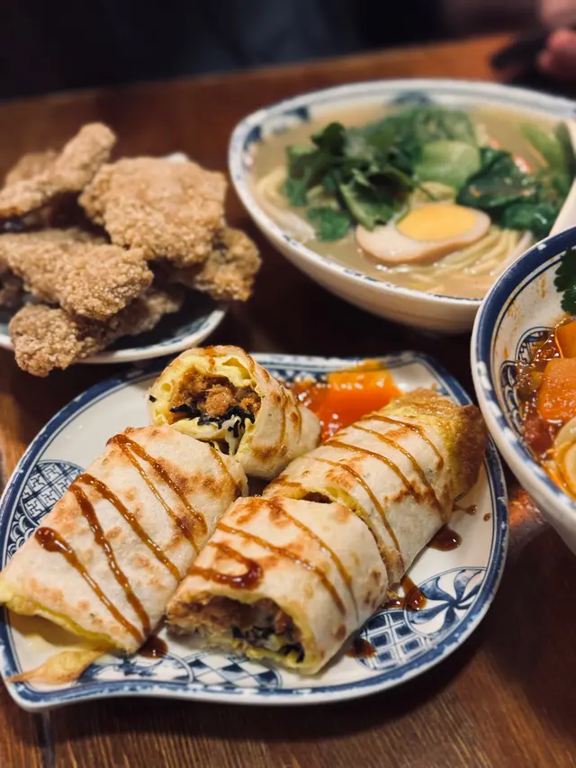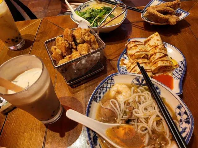 下午人唔多,唔洗等位。枱櫈偏細,坐耐左無咁舒服。環境係懷舊feel,像舊式商店。野食方面,各自叫碗米線,麻麻地。再叫鹽酥雞同蛋餅同朋友share。鹽酥雞同蛋餅比較好食。雞炸得脆脆,而蛋餅夾有肉鬆加醬汁。另叫杯珍珠奶茶,都係一般。查看更多