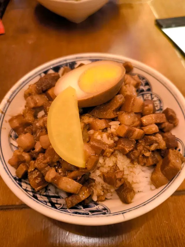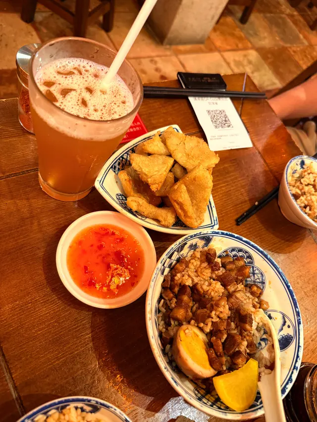 去台灣餐廳,最直接就係試咗「香酥雞扒魯肉飯」加埋「胚芽珍珠奶茶」。一上枱,先見到雞扒外皮金黃脆卜卜,切落仲聽到輕脆聲。咬開肉質嫩滑,香料同蒜味都滲到入去,唔會得個脆殼咁簡單。底下嘅魯肉飯更加討好,肥瘦相間,滷汁鹹香帶啲微甜,飯粒吸足咗醬香,油潤但唔會太膩。雞扒同魯肉嘅組合,一脆一軟,口感同味道都幾有層次。 至於胚芽珍珠奶茶,入口比一般珍奶多咗股穀物清香,奶味滑但唔壓住茶底,飲落有種淡淡堅果感。甜度適中,唔會膩口;珍珠彈牙有嚼勁,再加埋胚芽嘅清香,成杯有新鮮感。 呢套配搭食落滿足,鹹香厚味之後再由奶茶收尾,輕輕洗走油膩,留返茶香。成餐唔止係飽,仲覺得食得舒服,值得推介。查看更多