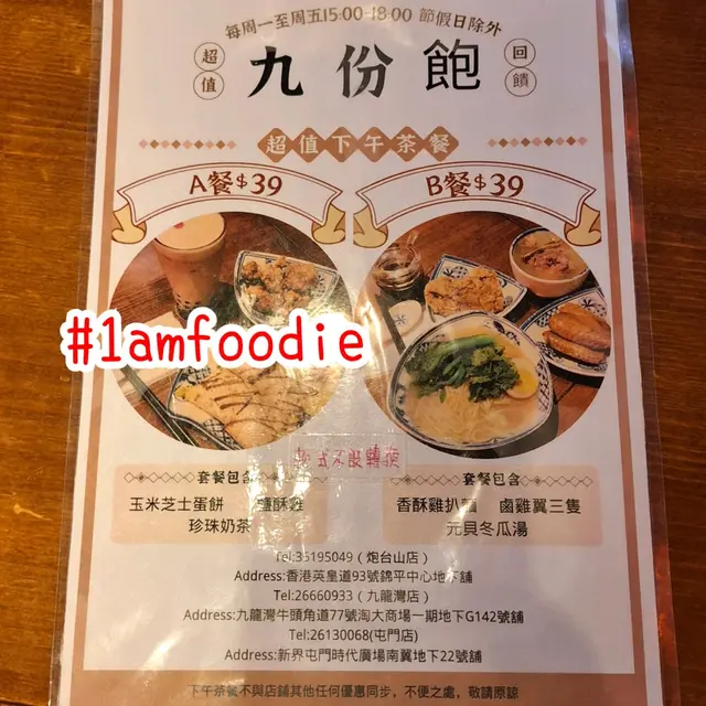九份飽 (屯門時代廣場南翼) (屯门) 网址: https://s.openrice.com/QrLS072eB00 地址: 香港屯門屯合街2號屯門時代廣場南翼L1樓22號舖 电话: +852 26130068