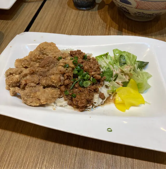 拌麵,結果也不算太差,拌麵旁邊有點肉操,鹽酥雞扒,其實也和我當年沙田河畔的