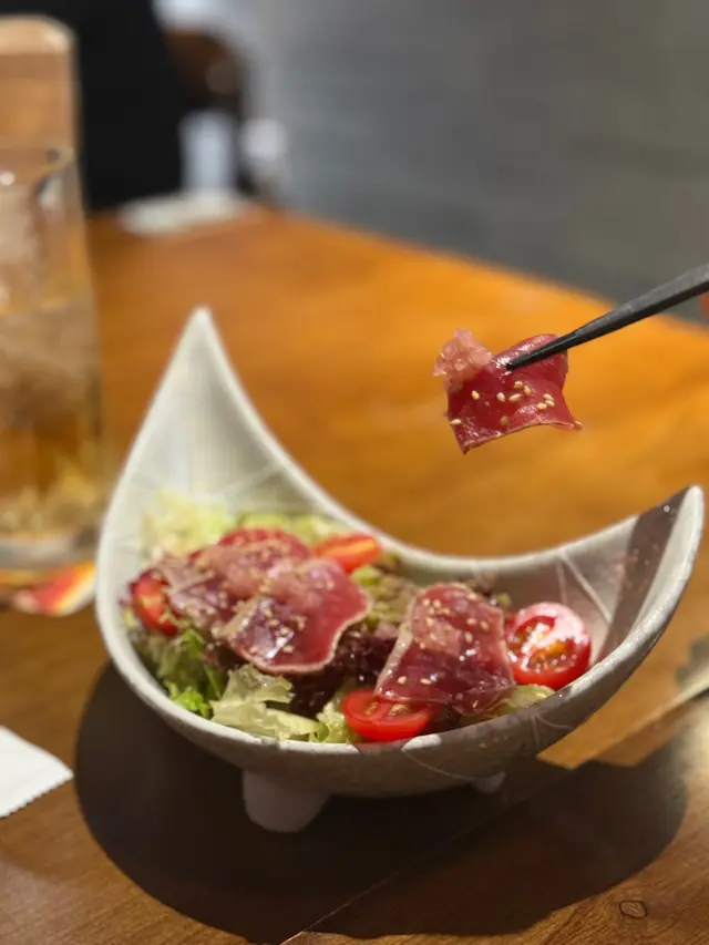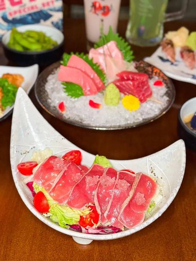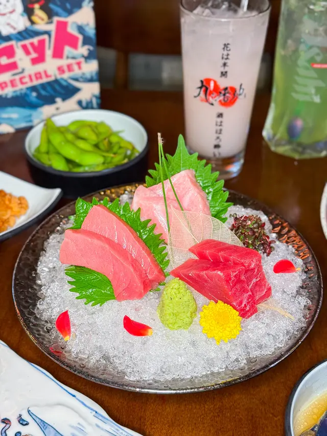 如果唔係朋友介紹都唔知道原來係金巴利道除咗韓國餐廳外 係尖沙咀君怡酒店1樓仲有間幾靚嘅日本居酒屋 - 九十番地居酒屋裏面環境乾淨寬敞 帶點傳統日式居酒屋的裝修 座位又唔迫 好啱朋友聚會或者飲返杯 款式選擇種類都好多 有壽司、刺身、串燒、鍋物等等雜錦天婦羅 $138有三隻蝦同埋其他蔬菜 炸得不油膩 外脆內嫩✨雜錦刺身沙律 $108推薦!刺身沙律新鮮而且份量足 ✨五花腩 $38牛肋肉 $48✨牛舌 $68牛舌及牛肋肉肉質軟嫩 保留煙韌口感 調味,剛好;五花腩味道濃郁 有油脂感而且好香 但不會過膩✨金磚豆腐 $38推薦!上枱金黃色好吸引 而且外脆內軟 熱辣辣而且豆腐好嫩滑廚司推介壽司拼盤(8點) $238壽司拼盤有6/8件選擇 款款都幾新鮮 包括有味道濃郁嘅吞拿魚赤身 我最愛的左口魚裙邊 同埋新鮮嘅池魚 可以食到當日最新鮮或者時令嘅款式 壽司拼盤係一個唔錯嘅選擇另外餐廳有優惠時間段 下午4點至7點有happy hour;晚上10點半後有多款食品半價 啱哂想宵夜的人🙌🏻…查看更多