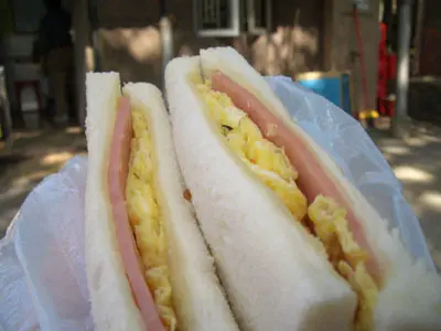 在上水巴士站附近等候姨姨之際,肚子已經餓得咕嚕咕嚕,跟大人說"不如買件蛋治食咯!"原來大人同樣餓得咕嚕咕嚕,月巴母女就走進這間九巴員工茶水站買三文治。茶水站簡陋地只有幾張桌子,都是方便一眾巴士車長用膳而設,是沒環境可言了;不過這些員工茶水站才是尋寶之地! 見到有位叔叔那碗青紅蘿蔔湯實在夠火路得很,看來相當好飲哩!!茶水站似乎是兩夫婦經營,老闆比較沉默,老闆娘相反地健談友善,跟友善老闆娘點了腿蛋治和蛋牛治各一,即時聽到老闆下油煎雞蛋的聲音了, 多快~~~自己的腿蛋治一拿上手已感到其柔軟,打開膠袋一看已經知道這份三文治會很好吃,因為那片煎蛋已經看到相當軟滑,果然! 雖然煎蛋看來沒有什麼蛋汁,但吃來仍是濕潤可口,而不是乾乾之輩,雞蛋味道也頗香,好好吃的一片蛋!洋火腿就是洋火腿,不過當它配著雞蛋之後就變得很很很好吃了! 麵包新鮮柔軟,水準真的不俗哩。大人的蛋牛治,用上了罐頭咸牛肉,略略一看也似乎頗多牛肉哩。姨姨買了熱奶茶,月巴人只顧著品嚐美味麵包,忘記問問水準如何, 有機會親自一試!!下次再來尋寶!!…查看更多