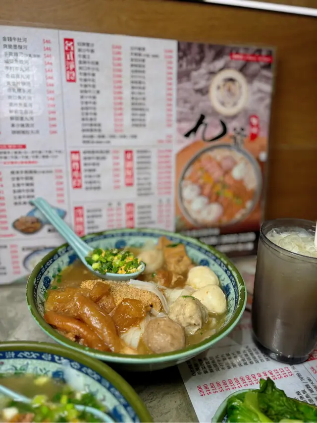 想在尖沙咀找道地港式粉麵? 九爺牛腩位置都方便前往,除了尖沙咀店外,九爺牛腩在佐敦、荃灣均設有分店,擁有穩定客源與好口碑,是不少老饕心中的港式粉麵餐廳的推薦首選。終於吃到心心念念的招牌八寶河,終於吃到心心念念的招牌八寶河,愛吃肉的會愛死,崩沙牛腩切得夠厚,沒想到是輕鬆一夾就能化開,崩沙牛腩十分軟腍,肉感滿足就不多說了,重點是崩沙牛腩香嫩得很。鮮甜墨丸濃濃海鮮味,吃得到墨魚塊,味道、嚼感層次豐富。金錢牛肚瞬間提高了河粉一個檔次升級,金錢牛肚咬起來的彈牙感超級棒,不會咬不動,金錢牛肚熟度適中,更增添了這一碗河粉不一樣的口感。手打牛丸咬下去的瞬間,牛香四溢,手打牛丸扎實而有彈力,每一口都能感受到手打牛丸的鮮嫩多汁。九爺牛腩除了牛類、丸類超有名,汕頭魚餃更是人氣王,必吃九爺牛腩的汕頭魚餃,皮彈餡多,肉嫩鮮美,滿足味蕾,饕客吃了都讚不絕口。香菇貢丸也是很強,咬下去整顆彈力十足,濃郁肉香結合香菇香,香菇貢丸富有肉汁感,太喜歡了。潮州魚蛋確實挺有一套,以新鮮魚肉打成潮州魚蛋,咬感軟中帶彈,而且魚的鮮味明顯,是近期吃過數一數二好吃的潮州魚蛋。甘香牛筋嚐起來不是單純的滑彈,亦帶有黏性的軟滑,大塊的嚼上來極之過癮,甘香牛筋那個火候掌握得相當棒。香茅雞翼的個頭不小,厚度頗有誠意,拿起來還覺得有點沉,喜歡大口啃雞翼的別錯過,雞皮炸得金黃香脆,還帶點香茅的香料香,厚實的雞肉軟嫩又不失彈性,裡面水份保持得不賴,吃起來雞汁豐沛,是生活的小確幸。九爺牛腩各式炸物現點現炸,飽滿的酥炸雲吞,外皮經高油溫炸至酥酥脆脆,一上桌香味逼人,酥炸雲吞餡料豐滿,使用多尾原隻鮮蝦,真材實料,蝦肉鮮彈,別忘了沾點甜酸醬,酥炸雲吞有甜酸醬加持猶如畫龍點睛,品味起來更為唰嘴。查看更多
