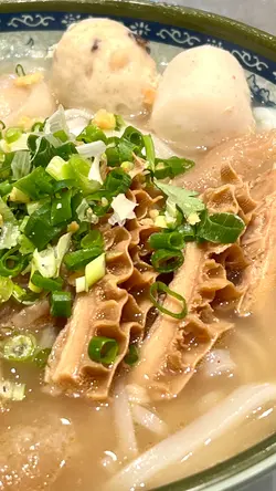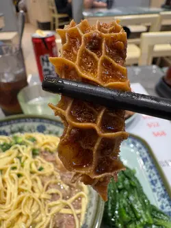 今晚想食清啲,咁啱见到呢间九爷牛腩就试下啦。首先叫左崩沙腩鱼蛋幼面,崩沙腩入口即化,牛味好突出,汤底清而不腻,鱼蛋弹牙有鱼香,幼面吸晒啲汤汁,一碗落肚超满足。另外仲有个切腩片头捞粗,粗面烟韧,十分挂汁,切腩片厚薄均匀,每啖都系牛腩嘅浓郁香气,另外仲有个汤清清喉咙添。我哋仲要左个小食拼盘,墨丸弹牙而且带有墨鱼胶香,鱼片头爽口热辣,孜然鸡翼烧得外脆内嫩,云吞皮薄馅鲜,一次过试晒四款,再加埋个冻柠茶作结,冰凉解渴,甜度啱啱好。今次系我第一次嚟呢间舖头,环境干净企理,职员全程有礼,做野都好爽手。呢餐整体消费二百蚊左右,性价比高,如果有街坊路过,可以嚟试下呀!…查看更多