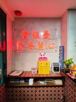 。家家茶餐廳格局都大同小異,但難得這裡座位編排得不算密,牆上除了有不同的菜式推介外,最有趣是貼上好些打工金句