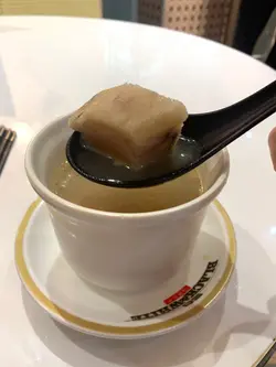 ,非常搞笑。翻一翻餐牌選擇十分之多,但講到最划算非晚市二人套餐莫屬,包例湯、一道鮮魚或鮮雞菜式、一道是日晚餐款式、油菜、是日例湯及熱飲,另加錢轉凍飲或升級特飲。茶餐廳的基本設定,就是將所有餐具、基本調味料都已放在枱旁櫃桶內。先來兩碗「老火例湯」,入口果然夠老火,味道清甜,攪拌一下,看到有很多湯料,製作一點也不馬虎