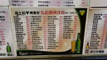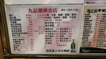 家中屋企部匹半冷气机好似够期,所以同女友落旺角D电器铺睇睇.原来匹半变贫窗口机得LG同格力哩个牌子,选择少得可怜....归家前,顺便系旺角食埋饭,早排去街头标记打冷,今次去街尾哩间九记打冷,点知就超级中伏!点咗鹅肠并猪大肠,芝士虾伊面,椒盐鱿鱼须,荔枝梳打同提子梳打.优点:1, 潮州打冷居然有荔枝同提子梳打,够创意!2, ......再揾唔到优点鸟!缺点:1, 冷气不足!2, 猪大肠质素比标记韧.3, 虾伊面嘅虾唔挑虾肠都算!虾只又细,都算!虾肉口感有D霉,完全唔弹力!好明显D虾已经唔新鲜,但照出菜俾客!4, 椒盐鱿鱼须一上枱,颜色偏深,都算,鱿鱼须件件口感过韧,唔弹牙,唔掂!5, 相比起标记,每一碟菜份量都不足!6, 埋单$334,我帮衬标记食四个菜加两罐汽水,鹅肠并猪大肠,蚝饼例牌,豉椒炒圣子,椒盐鳝球,都只系$331!贵又贵过标记,份量又少过标记,质素又差过标记,依家完全明白点解标记门口排哂队但九记就.....!即时将九记列入本人在世至今遇过最差打冷店!不再帮衬!…查看更多