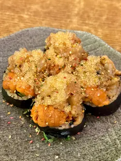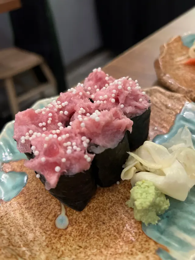 小店环境舒适, 里面嘅布置营造出浓厚嘅日式居酒屋氛围~主打创意卷物同串烧, 更会不定期转换菜单, 最近更推出《2小时清酒之旅》, 可以同朋友嚟尽情品尝清酒🍶𓌈⸝⸝ 自家制A5和牛汉堡A5和牛汉堡煎至微焦, 肉质柔嫩, 肉味香浓, 本身系加埋半溶芝士🧀, 会更惹味㗎!𓌈⸝⸝ 九鬼刺身丰杯一款系杂锦鱼生, 一款系海胆拖罗蓉, 两款都好新鲜!里面有刺身、牛油果粒🥑, 仲有面包脆脆, 口感更丰富!🍣左口鱼边寿司必试👍🏻 左口鱼边轻轻炙烧过, 逼出鱼油, 超级肥美!寿司饭有调味过, 再加啲wasabi, 好食😋𓌈⸝⸝ 桜花虾扬豆腐表面铺满樱花虾同柴鱼片, 香酥嘅扬豆腐同汤汁好夹, 做下酒菜都唔错 (๑˃̵ᴗ˂̵)و🐟鳕鱼西京烧银鳕鱼表皮烧至焦香, 鱼肉好嫩滑, 带有西京味噌嘅甘甜味𓌈⸝⸝ 盐烧牛舌芯牛舌厚身, 口感爽弹𓌈⸝⸝ 白色神乐呢款甜品有豆腐雪糕、冲绳黑糖蕨饼及团子🍡。豆腐雪糕带豆香;黑糖蕨饼软Q;团子微烟韧…查看更多