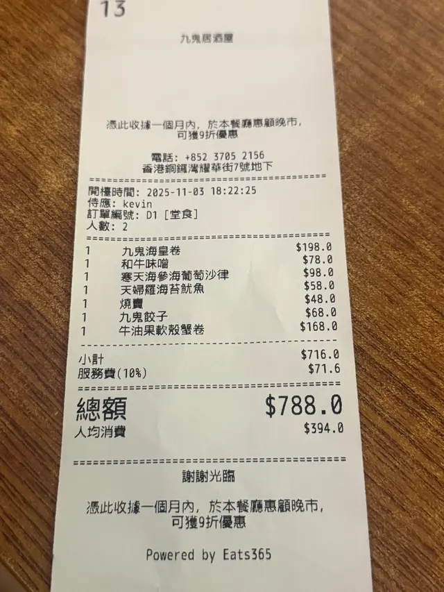 九鬼居酒屋 (耀華街) (铜锣湾) 网上订位享低至8折优惠并赚Rice Dollars 网址: https://s.openrice.com/QrLS0aeOA00 地址: 香港銅鑼灣耀華街21號華耀商業大廈地下7號舖 电话: +852 98512327