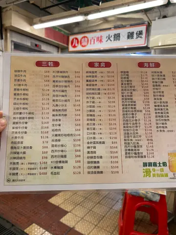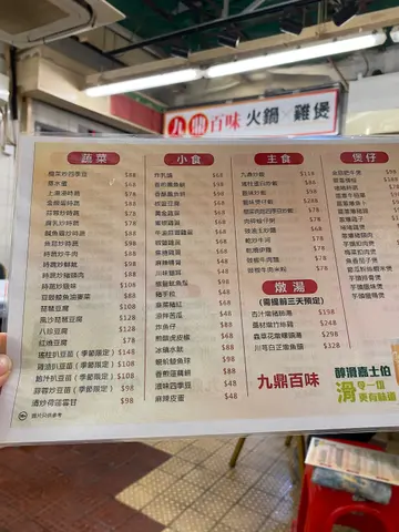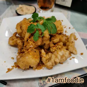 【观塘区】【九鼎百味】踏入 2022 年,祝大家新年快乐!几年前仲有好多旅游大计、义工服务大计会喺呢几年发生,但系全部泡汤。但系我相信路系人行出嚟嘅,我改变我自己,做吓啲唔识、冇做过嘅嘢,甚至系自己以前好憎人做嘅嘢,就系开始做 foodie 喇。唔想喺度讲太多感言,我呢度系 16/5/2020 开嘅,有咩感受都留返到时有机会先再讲,半年讲一次大嘅感受好似密得滞。再加上,实情我就已经日日喺度讲紧我心中所想,讲其他感觉远远多过味觉,所以只要有跟开我啲 post 的话,都明架喇。适逢又系朋友约食饭,就系同我一齐食粉岭贤河垃圾放题或者叫粉岭垃圾贤河放题嘅𠮶位朋友。今次佢话佢识人,所以绝对有质素保证,咁我当然出现啦,话晒𠮶时都仲未同佢做冬。约到去观塘,仲要上瑞和街街市个熟食中心,我第一次嚟咋。喺四楼揾咗阵先见到呢间,都系街市大牌档咁嘅款,见佢有胶帘围住,夏天嘅时候应该系有冷气叹嘅。呢位朋友系一个比较急嘅人,佢一早已经上咗去,仲食紧小食,系「炒花生」,我后尾都有试,都几好味。坐低咗就叫嘢食,等上菜喇。首先出场嘅系「眼泪鱿鱼」,不过舖头𠮶边话畀我哋试吓,所以唔知如果系 $58 买𠮶碟系咪都系咁嘅款,大家唔好用个相片嚟做标准。不过味道上,呢味𩠌真系超级惹味,啲 wasabi 劲攻鼻,我朋友流晒眼泪,我就勉强顶到冇事,正。之后系「滋味四季豆」,我其实唔多好四季豆,所以都系店家𠮶边拎少少出嚟畀我哋试。都系冷盘嚟,有啲蒜头、辣椒粒喺度,极惹味,令到本身唔多食四季豆嘅我都一条接一条咁食。不过同上段一样,呢碟未必就系卖紧 $38 𠮶碟,敬请留意。好喇,讲完啲试食嘅嘢,都要确切咁叫啲嘢食吖。店家推介「油盐水花甲」,$78 一碟,就叫碟嚟玩吓啰。一上菜已经觉得佢热辣辣,望落只只都肥美又厚肉,唔会得啲壳,系只只都系咁!食落鲜甜嫩滑,平时唔多食花甲嘅我都狂抢,非常好食!之后就食返个「秘制羊腩煲」,今年未食过羊腩煲,就喺呢度食一个啦,反正又唔系鸡煲、唔系火锅。$328 嘅价钱唔算平,不过畀得起就唔使等试食啦。个煲都几够羊肉,而且啲马蹄同埋枝竹都入晒味,所以呢个都算系一个几唔错嘅羊腩煲㖞。两条友食唔得多,所以叫多个「椒盐鲜鱿」就算喇,$88 嘅价钱。我觉得呢碟就冇之前𠮶啲咁惊喜,不过都系外脆内爽嘅质素之作。啲脆浆同鱿鱼片算系几完美结合,加埋啲椒盐,用嚟送啤酒就真系相当一流,不过我哋冇饮酒,所以争咁啲。两个人夹埋饮咗四罐「可口可乐」,一罐 $10 都要四十蚊。由于呢餐系朋友请我食饭,我只系八到餐饭大约用咗五百零蚊。个人认为一人二百几都合情合理,我哋冇饮啤酒都系其中一个因素,不过食到呢啲有质素嘅大牌档食物嚟讲就算唔错啦。本身喺呢度就讲完架喇,之但系有一点我都系忍唔住要讲,就系餐牌上面有道菜个名叫「火舞风云」,即刻就谂起 1988 年嘅一套同名电影。𠮶时喺某个节目讲起呢套戏,即刻劲有共鸣,笑死。问返原来呢道菜系火龙果咕噜肉,明白嘅。。。(地址:观塘瑞和街9号瑞和街市政大厦4楼14-15号舖)#1amfoodie #foodie #hkfoodie #thatfoodiething #hkfood #food #1ambackup #1am0536 #foodies #tasty #globaleats #tastyfood #foodpics #followforfollowback #love #eat #1am观塘区 #观塘 #官塘 #九鼎百味 #眼泪鱿鱼 #滋味四季豆 #油盐水花甲 #羊腩煲 #椒盐鲜鱿 #街市熟食中心 #大牌档 #瑞和街街市 #鸡煲 #火舞风云…查看更多
