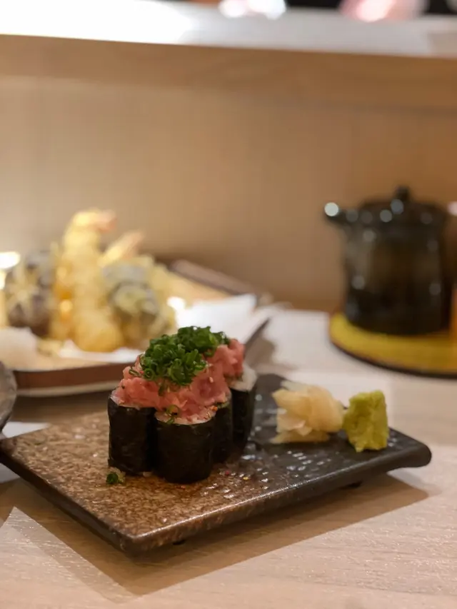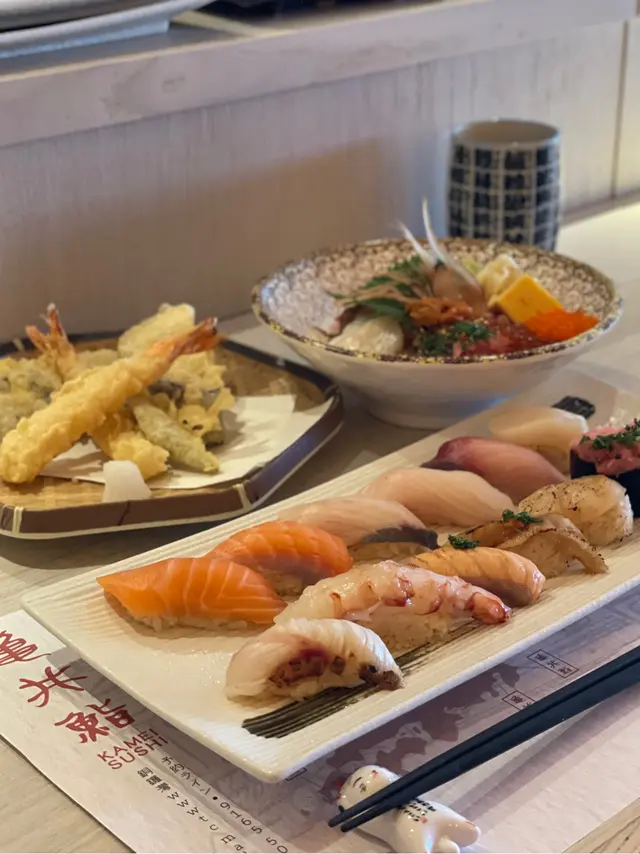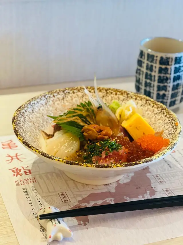 世貿中心翻新咗之後冇以前咁死氣沉沉,亦都多咗好多唔同嘅商舖。係行街嘅時候,無意之間發現咗呢一間過江龍,其實當時最吸引嘅位係亀井鮨係全港首間主打「生酮壽司」嘅舖頭,但係由於我真係好想食澱粉,所以最後都係嗌咗其他嘢,如果下次去嘅話一定會試一試。‣ 北海丼 $288每間餐廳嘅北海丼都會有啲唔同,例如有啲北海丼會有白身魚或者吞拿魚。而亀井鮨嘅北海丼有三文魚、帆立貝、蟹肉、蟹籽、日本海膽同甜蝦,咁啱都係一啲我好鍾意嘅刺身。三文魚嘅肉質細嫩,對我嚟講魚肉肥瘦適中,同時都帶有魚香,我忍唔住再額外嗌多咗幾塊三文魚。帆立貝質地相當柔軟,唔會有腥味。其他刺身就正常發揮,但海膽略嫌腥味較重。‣ 香蔥鮪魚腩蓉丼 $198食落去嘅時候覺得鮪魚腩蓉丼比起想像中出色,佢喺香蔥混合飯素,令魚香味道更加突出。而我覺得魚蓉食落去個口感相當之綿密,同時魚本身都好新鮮,所以每啖你食落去都會覺得好幸福。‣ 雜錦天婦羅 $128本身對天婦羅冇太大嘅期望,但我覺得係有驚喜。天婦羅外表睇落金黃酥脆,唔會覺得個炸衣太厚,食落去好似成口炸粉。最驚喜嘅位係佢真係可以保持到食材本身嘅口感同埋風味,就好似香菇,咬落去嘅時候啲汁係口腔入面爆發出嚟。當然佢嘅炸蝦都處理得唔錯,可以保持到蝦嘅嫩滑彈牙。但我覺得比起炸蝦天婦羅,佢啲蔬菜天婦羅更加值得一試。#foodbara_diary…查看更多