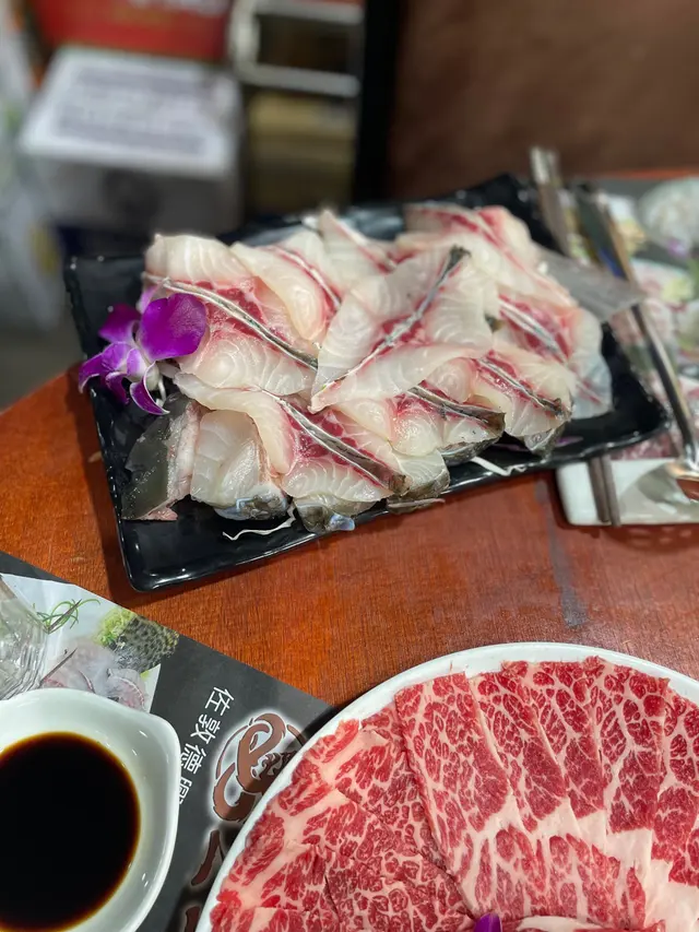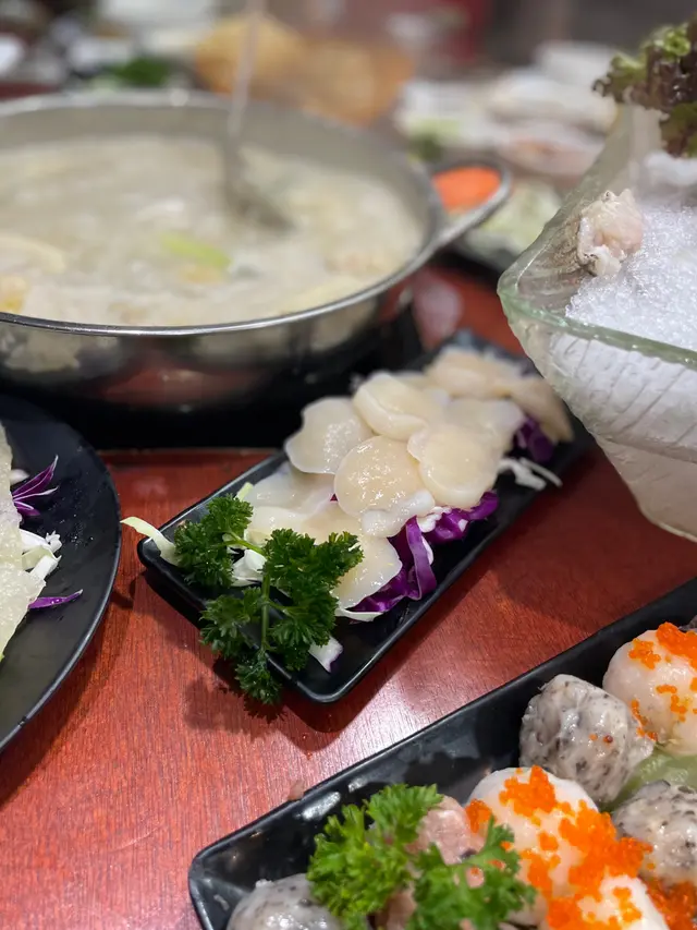 呢間鋪頭嘅特色高係 孖寶🤣今次揀左👇🏻🌟象拔蚌+豬肉湯底🌟鱆紅魚刺身+手切雪花肥牛🫶🏻呢個可以揀半份or 一份👍🏻人少都可以食到😋🌟係OP訂位,重人頭送一隻鮑魚😍雖然送但都好岀色,上到枱重識郁😌🐟海鮮全部都好新鮮👏🏻但值錢又吾係好貴,十分抵食!🐖豬骨湯底十分足料,有三至四嚿豬骨係入面👍🏻🐂牛肉方面,牛味吾係好濃,但肥瘦適中!都好味🤤其他火鍋料都係正常發揮,但值得一讚嘅係!佢個響鈴卷係即嗌即炸,十分鬆脆😍😍😍絕對吾係嗌貨果啲實的的🤭呢間餐廳絕對係可以安哥!佢有獨立房間,人多可以book 房,人少可以座卡位絕對係收工晚飯,飲翻兩杯嘅好地方👏🏻👏🏻👏🏻查看更多