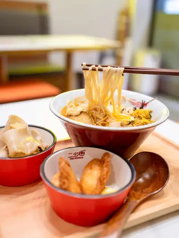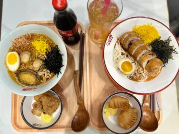 最近发现有间以鲜虾浓汤为招牌嘅面店,每日用100公斤新鲜虾头及其他海鲜配料熬制,每100公斤的虾头只可以熬制66碗虾汤!真系够晒足料🤤▪️海鲜浓虾汤面($98)🦐套餐(+$18)配料有鲍鱼、樱花虾、帆立贝、糖心蛋、蛋丝同紫菜,睇起嚟一啲都唔单调😋平时食虾汤拉面比较多,今次嘅面底系类似上海面相比起拉面更加容易入味,完全将虾汤嘅精髓融入到面内。加钱变套餐有小食同饮品~▪️配炸虾角🧡自家制炸虾角颇薄馅靓,里面全部都系虾肉,外皮香脆。▪️配热玫瑰蜜桃果茶🌹桃味同玫瑰嘅混合,散发住浓郁玫瑰嘅香味,冬天饮呢杯暖笠笠成个人都好舒服。▪️盐水鸭汤面($88)🦆盐水鸭口味比较清淡略带少少咸味,肉质松软腍身又唔会好肥腻。同样有蛋丝同紫菜,都系我嘅最爱😋▪️配川味金钱肚🤎川味金钱肚麻辣鲜香,唔会好大旧切得好幼,食得又方便~底下仲有大量木耳丝!▪️霸气玉油柑(+$3)🍹个名好霸气🤣饮起黎酸酸甜甜,味道有少少似杨桃汁。…查看更多