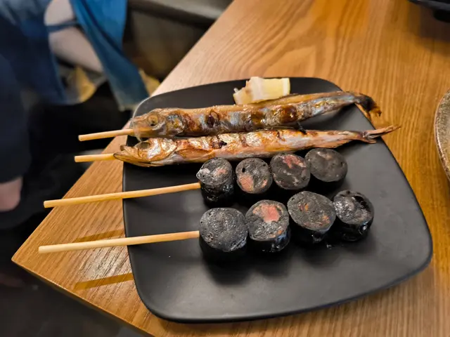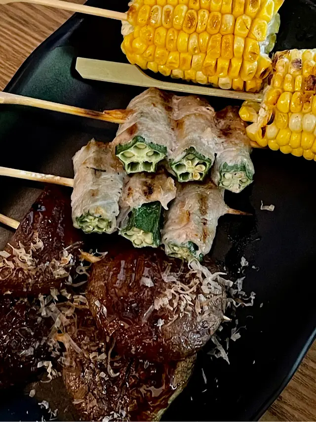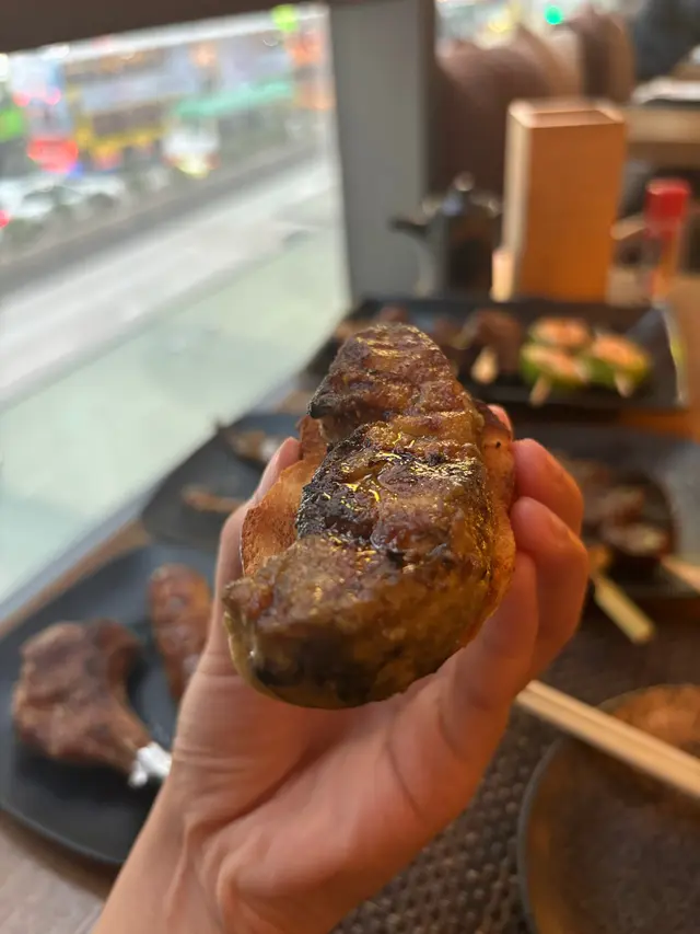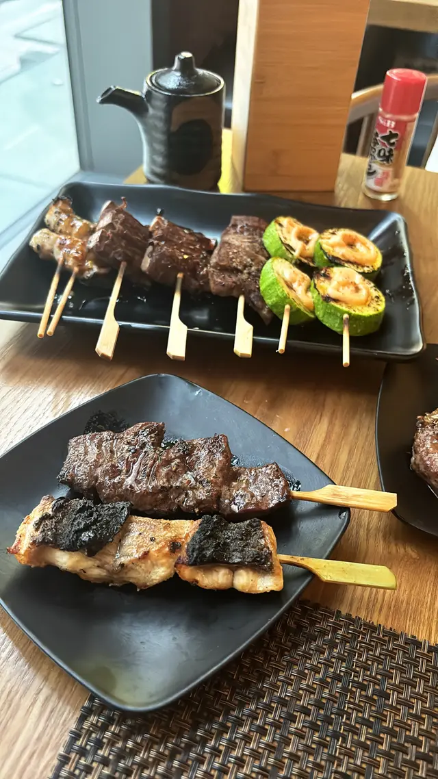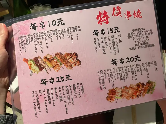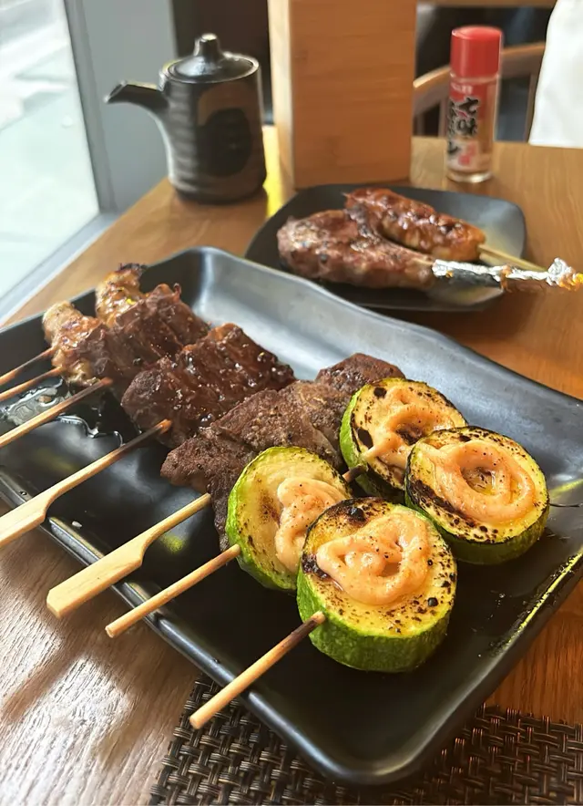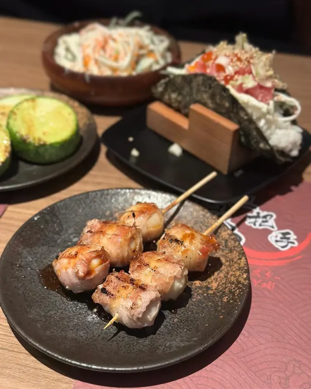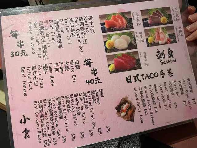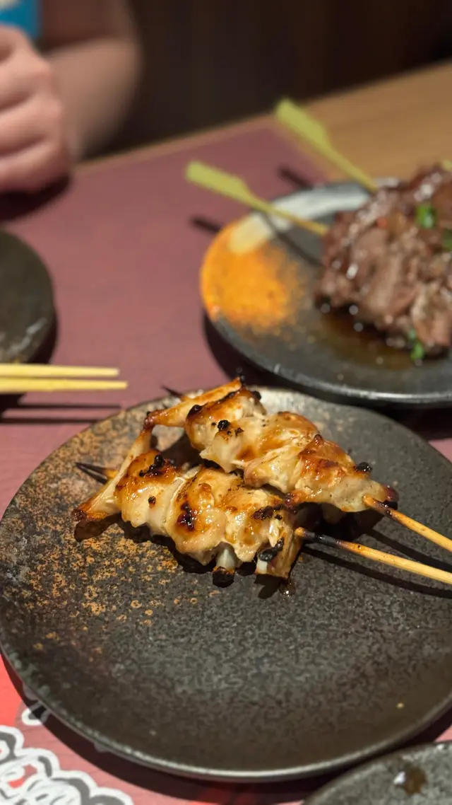 餐廳位於中環街市附近,空間好細,得好少坐位!想試記得早啲Book 位/ 早啲到啦💕呢度既賣點係最平既串燒,只係$12一串😍🤤 串燒大部分係兩串起(✨留意翻).📍雞骨腸 $10📍雞軟骨 $10📍雞皮$20📍七味雞腎$12📍孜然雞心 $12📍炸明太子雞翼 2件$48 📍厚切牛舌👅 $40📍牛頸脊 $25📍牛橫隔肌 $20📍白鱔 $42 👍🏻有驚喜,好簡單既調味,但又好重魚油香😍魚質爽口,無加其他調味去霹魚腥味,好食🤤.📍蟹子沙律🥗 $32📍菠蘿🍍 $12.📍吞拿魚腩蓉🐟Taco手卷 $48 👍🏻📍火炙帶子Taco手卷 $48 👍🏻紫菜厚身乾身,入面夾滿壽司飯、青瓜絲同沙律醬,面頭再舖滿吞拿魚腩蓉/ 帶子,咬落有紫菜既脆,又有配料既軟,一啖有哂唔同口感,層次豐富,超好食😍.Overall,食物質素唔錯,串燒味道恰到好處,唔會串串都一樣調味,價錢合理,會回頭既一間串燒💕 .=========================.食物:9/10環境:7/10服務:8.5/10抵食度:8.5/10回頭度:8.5/10..