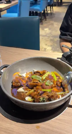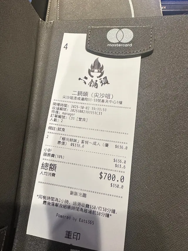 尖沙咀🚇嘅二锅头真系火锅控嘅天堂😍,佢阔落又舒适嘅环境加上座位宽敞,空间感十足✨,无论系三五知己定系一大班朋友聚餐打边炉👏,都唔会觉得逼。佢主打唔少特色煲类🍲,仲有无限时任食火锅放题🎉,绝对系一大卖点👍,真系食到你捧住个肚走!今次我哋试咗几款招牌煲🍲,款款都咁有惊喜🤩!首先嘅系秘制牛杂煲🐮,牛杂炆得够晒入味😋,有牛蒡、牛肚、牛肺同埋牛肠,口感软腍得嚟又带点嚼劲👅,每一啖都充满住秘制酱汁嘅精华✨!跟住系秘制火焰牛尾煲🔥,呢个煲真系够晒Gimmick!店员会即席将玫瑰露酒🍶倒入煲内再点火🔥,视觉效果一流!牛尾炆到软腍入味🤤,带有淡淡酒香🍶,食落暖笠笠,超正!仲有香浓黑椒猪手煲🐖,猪手炆到软糯入味😍,黑椒味香浓得嚟又唔会太辣🌶️,猪皮胶质丰富💫,食落啖啖肉🍖!汤底方面🥣,我哋拣咗鸳鸯汤底🍲,一次过试晒两款口味:越式香浓牛肉锅汤底比较清,😆带有香茅同埋其他香料嘅味道🌿,有啲似越式牛河嘅汤底;胡椒猪肚🐓鸡锅就够晒暖胃,胡椒味香浓🌶️,猪肚同鸡肉都好腍滑🐔!打边炉又点少得靓牛肉呢🐂?我哋叫咗牛板腱同埋本地鲜滑牛肉🐮。牛板腱肥瘦适中,渌几秒就食得,肉味浓郁🥩;本地鲜滑牛肉肉质鲜嫩滑溜✨,一入口就感受到佢嘅鲜!海鲜方面,墨鱼滑弹牙爽口🦑,粒粒蟹籽咬落卜卜脆💥,口感层次丰富;活海蚬只只都好新鲜🌊,肉质饱满鲜甜。仲有墨鱼仔🦑,细细只好可爱😊,渌熟之后口感弹牙,鲜味十足👏。自助区💪嘅火锅配料都非常丰富,例如有金针菇🍄、粟米🌽、水鱿🦑、豆腐同埋唔同嘅丸类,任君选择。小食方面,酸辣凉拌鱼皮🐟都好出色,鱼皮爽脆弹牙💥,酸酸辣辣好开胃🌶️。最后当然唔少得甜品啦🍮,佢哋有几款大福🍡,我哋食咗芒果大福🥭、草莓大福🍓同埋抹茶大福🍵,大福皮烟韧软糯😋,配埋果味cream系入面,好香甜。雪糕柜仲有多款口味嘅雪糕🍨,食完火锅再食个雪糕🥰,真系透心凉!总括嚟讲📝,呢度劲多款嘅特色煲类同埋烤鱼系外面的火锅放题好少有嘅🌟,而且呢度一个价钱全部任你食💰,加上无限时任食🕒,真系可以慢慢食⏳,慢慢享受!…查看更多