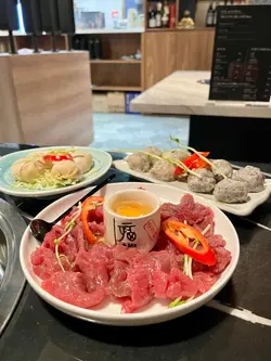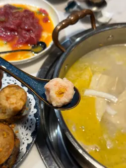 隔咗好耐再嚟呢度,最令我念念不忘嘅绝对系佢哋嘅汤底!上次试咗清甜滋润嘅三椰鸡汤,今次转个口味,试吓个沙白蟹锅——果然无令人失望!店员好贴心,即场用白酒炒香啲沙白同蟹,香味「嘭」一声爆发出嚟,跟手倒入浓郁高汤,一滚起我已经急不及待饮咗两大碗!汤底鲜甜到不得了,只蟹有膏又实肉,啲沙白只只都肥尾,胡椒香气同海鲜精华完美融合,饮完成个人暖笠笠~之后落埋菇菌同支竹索味,正!🍢 手打黑松露墨鱼丸 + 凤城水饺墨鱼丸真系无得输!咬落去「啵啵声」超弹牙,仲食到粒粒黑松露味,诚意十足!凤城水饺细细粒但馅料饱满,虾肉同猪肉比例啱啱好,两啖一粒刚刚好~🥩 安格斯手切牛肉牛魔王必点!油脂分布好似雪花咁靓,牛味浓得嚟唔会腻,轻轻灼8-10秒,入口嫩滑到差啲唔使咬~蘸少少沙茶酱已经无得顶!🥬 杂菇拼盘 + 莴笋打边炉点可以冇蔬菜?杂菇够晒多款,莴笋清新爽脆,平衡返啲肉气,食完都唔觉滞~🍯 自家制竹蔗茅根水惊喜位!谂住打边炉实热气,点知佢哋嘅竹蔗茅根水清甜润喉,完全系「灭火神器」,饮完成个人都舒服晒~总结:汤底认真、食材高质、服务细心,无论想补身定解馋呢度都系好选择!已经同朋友约定下次再嚟试埋个冬瓜盅汤底~ ✨…查看更多