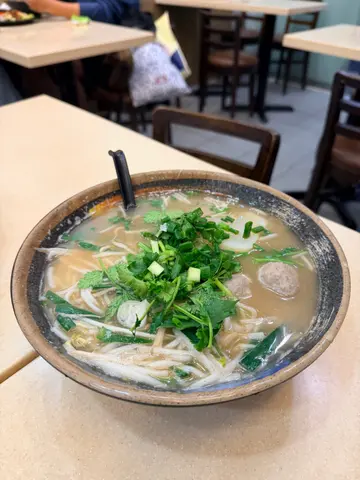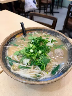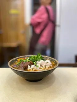 。热拌米线,配料加咗墨鱼丸同肥牛。热拌米线同汤米线又系唔同风味,捞汁酸辣惹味,再落入香菜榨菜肉碎等配料,米线爽口酱香浓郁。肥牛份量都几多下,入口牛味十足,墨鱼丸弹牙爽口,全碗食晒真系好饱