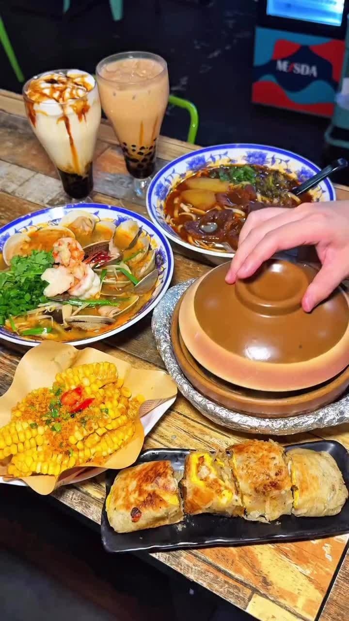 喺观塘返工嘅友人最近揾咗呢间楼上嘅台式餐厅,佢话呢间嘅味道几正宗,呢日lunch就嚟试吓🤭花甲鲜虾粉丝呢个花甲粉有劲多配料🙈 有好多新鲜嘅花甲,真系好鲜甜。另外大虾都几弹牙🦐 底下我拣咗粉丝,真系劲索汁,汤底几惹味,有海鲜嘅鲜味,又带少少辣🥰红烧牛肚牛肉面牛肚同牛肉都几厚身,牛肉炆得好入味,牛肚都几软腍🐮 汤底好浓郁,面质几有咬口🍜 份量都几足,真系几饱肚。避风塘系列小食餐厅新推出咗避风塘系列小食,宵夜时段过嚟仲可以有半价优惠😮 ♦️避风塘超甜粟米超级惹味,粟米粒粒饱满🌽♦️避风塘豆腐每件豆腐都好滑,配埋香脆嘅避风塘脆脆,两种口感相映成趣。♦️避风塘单骨鸡翼每枝单骨鸡翼都炸得好香脆🐥 够晒干身。肉松双重起司蛋饼呢个劲足料,外层几香口,入面嘅馅料好饱满,有劲多肉松同埋两种芝士🥰 芝士盐酥鸡有大量芝士淋喺盐酥鸡嘅表面,系个少少邪恶,但令人食唔停口嘅小食🐥 盐酥鸡嘅鸡肉都几嫩滑。饮品午市套餐仲可以用半价加配饮品,台湾特饮或者系新出品都可以有优惠🤑♦️黑糖珍珠奶茶虽然几多黑糖挂杯,但系味道唔会太甜,而且佢嘅珍珠好弹牙🧋♦️奶盖生椰拿铁呢个系餐厅嘅新出品,生椰拿铁嘅椰子味几香,同咖啡嘅味道几平衡,面头有芝士奶盖🥥呢间台式餐厅都几正,见到佢仲有煲仔饭系列都好吸引,等我下次过嚟食吓先 。如果喺呢头返工嘅朋友一定要嚟试吓 呢间餐厅😎…查看更多