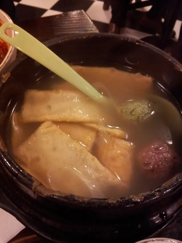 想吃韓國餐, 當然要去金巴利街,行到這間門口, 見入面也挻多人, 便進去了。其實全間餐廳是坐滿的, 我和朋友被六排到坐近門口的一張大枱, 那裡已經坐了6個人, 所以我們是明符其實的, 搭枱。先來三小碟前菜, 有泡菜, 菠菜 和薯仔, 不過不可以添加, 再要的話 $10 /碟。點了三樣, 雞肉石煱飯, 好咪道! 熱辣辣, 又有飯焦, 料亦足, 有生雞蛋, 菠菜, 生菜, 還有很多其他配菜, 很香口, 不錯!第二樣, 牛肋骨年糕。牛肋骨很入味, 吃落亦不會痴牙, 年糕亦有咬口, 極力推介!! 本人至愛!第三樣是土豆豬骨湯, 有點失望, 只有辣字, 沒有豬骨甜味, 薯仔配菜很淋, 但不推介。小吃選擇不多, 價錢也不算便宜, 有機會再來。查看更多
