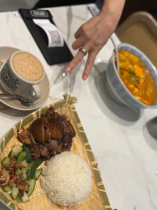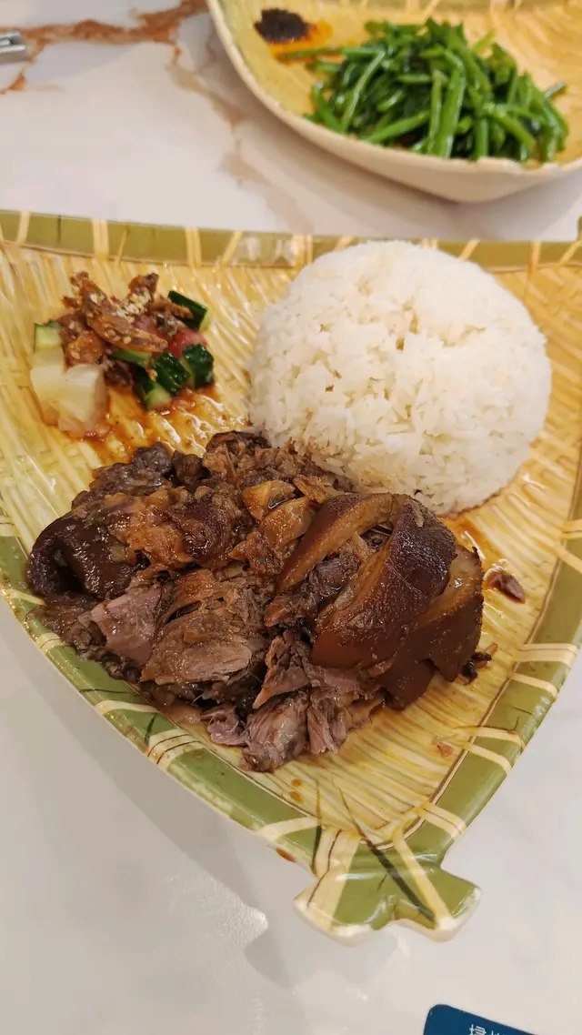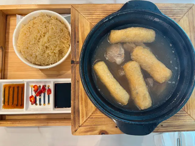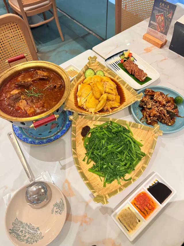 今日嚟到又一城,過咗嚟亞參雞飯,今日見到服務員企喺門口推介,有個藥膳豬骨煲,記得之前都嚟過,味道相當唔錯,服務員態度依然親切,舉手即刻就回應,服務員親切嘅笑容,促使我都系落左個套餐,套餐份量十足!有一個豬骨煲,一個通菜,半隻海南雞,一款小食,兩個白飯及兩杯飲品,咁多嘢食價錢都只係$268,今次比上一次更加好食,味道更香及濃郁!