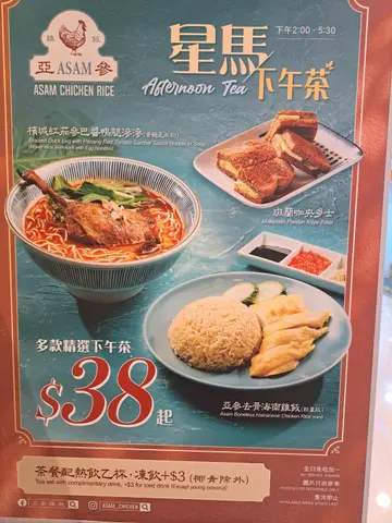 每次经过德福,都会来亚参鸡饭,叹番个下午茶!事因太挂念呢度杯斑兰咖啡同多士!每次我都会叫一款下午茶餐,(星期一至五,有三款下午茶餐$38!简直超抵,再加两款小食$39,埋单都系$77👍👍!今日我叫左个鸭肶渗渗同班兰咖啡!两款小食:辣鱼饼同咖央多士!辣鱼饼有好浓郁冬阴功味道😍我至爱!值得一提呢度D姐姐好有爱!每次光临贵店都会奉上两杯水给本大爷😅,每次都会话:滚水!睇热呀!我话我知啦!姐姐话:你知,我都要提提你!好有责任心👍👍!每当旺场时候!D姐姐都会互相帮助!紧守岗位!好团结!太兴旗下好多品牌本人都帮衬过!呢度D姐姐值得一赞!加油👏!本大爷食得开心会继续帮衬亚参💪💪